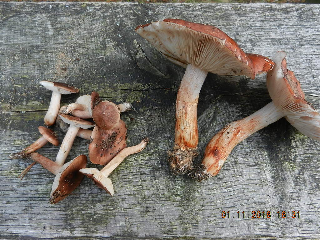 Insofern sind die kleinen für mich T. albobrunneum und von den beiden Großen sieht man zu wenig... sehen den "Tricholoma batschii/fracticum" etwas ähnlich :P