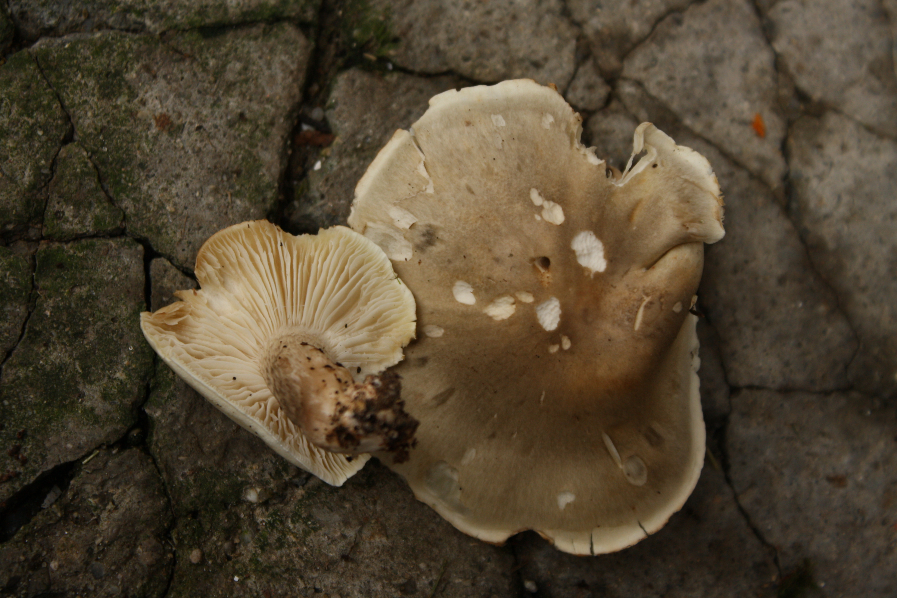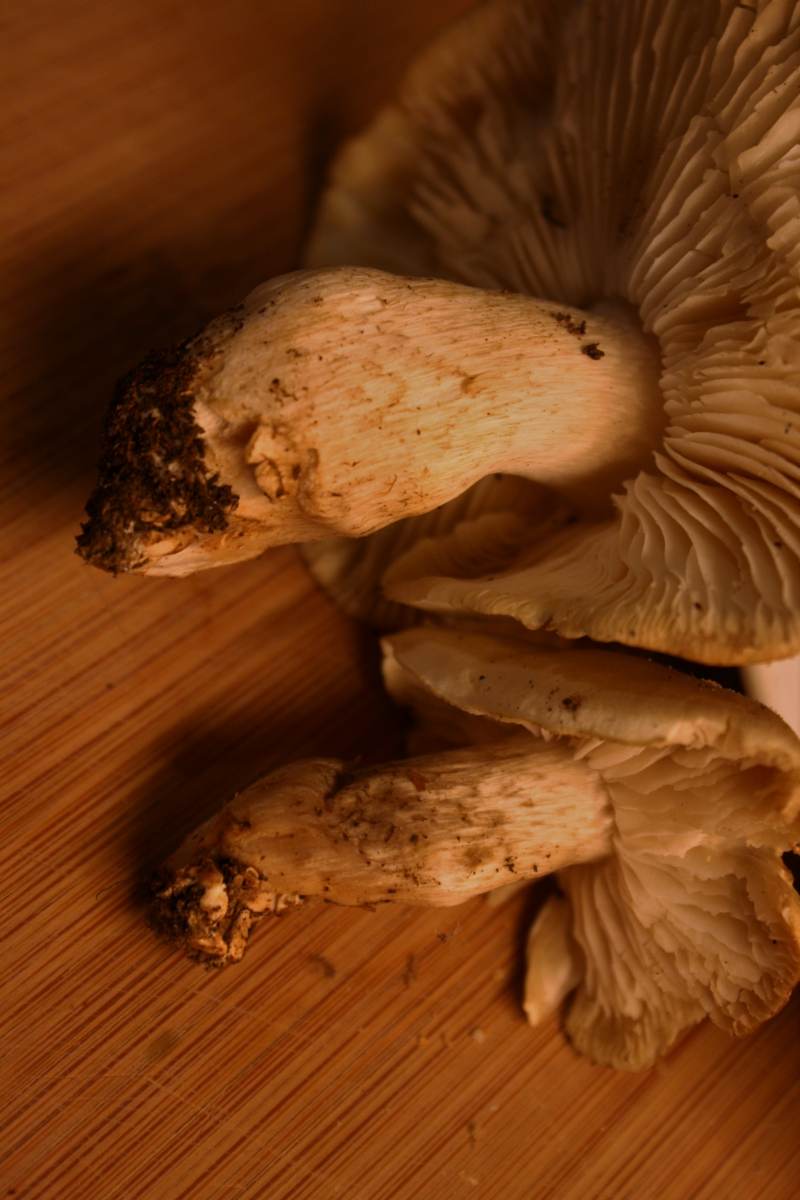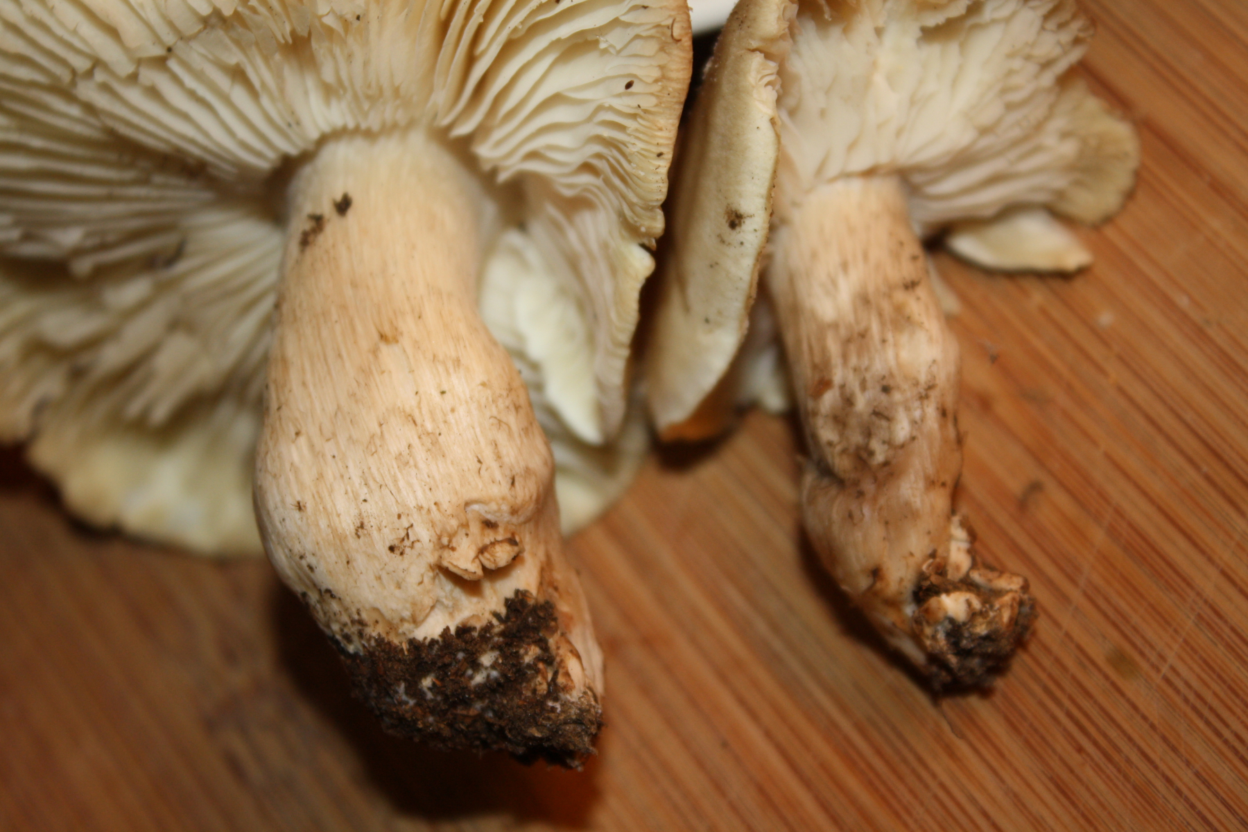 Hab jetzt noch Fotos von den Stielen gemacht - leider schlechte Lichtverhältnisse. Hoffe sie helfen trotzdem weiter. Dass es ein Seifenritterling ist, steht wohl fest. Ich interessiere mich halt derzeit generell für Pilze, gehe sozusagen in die Breite, daher meine Versuche...