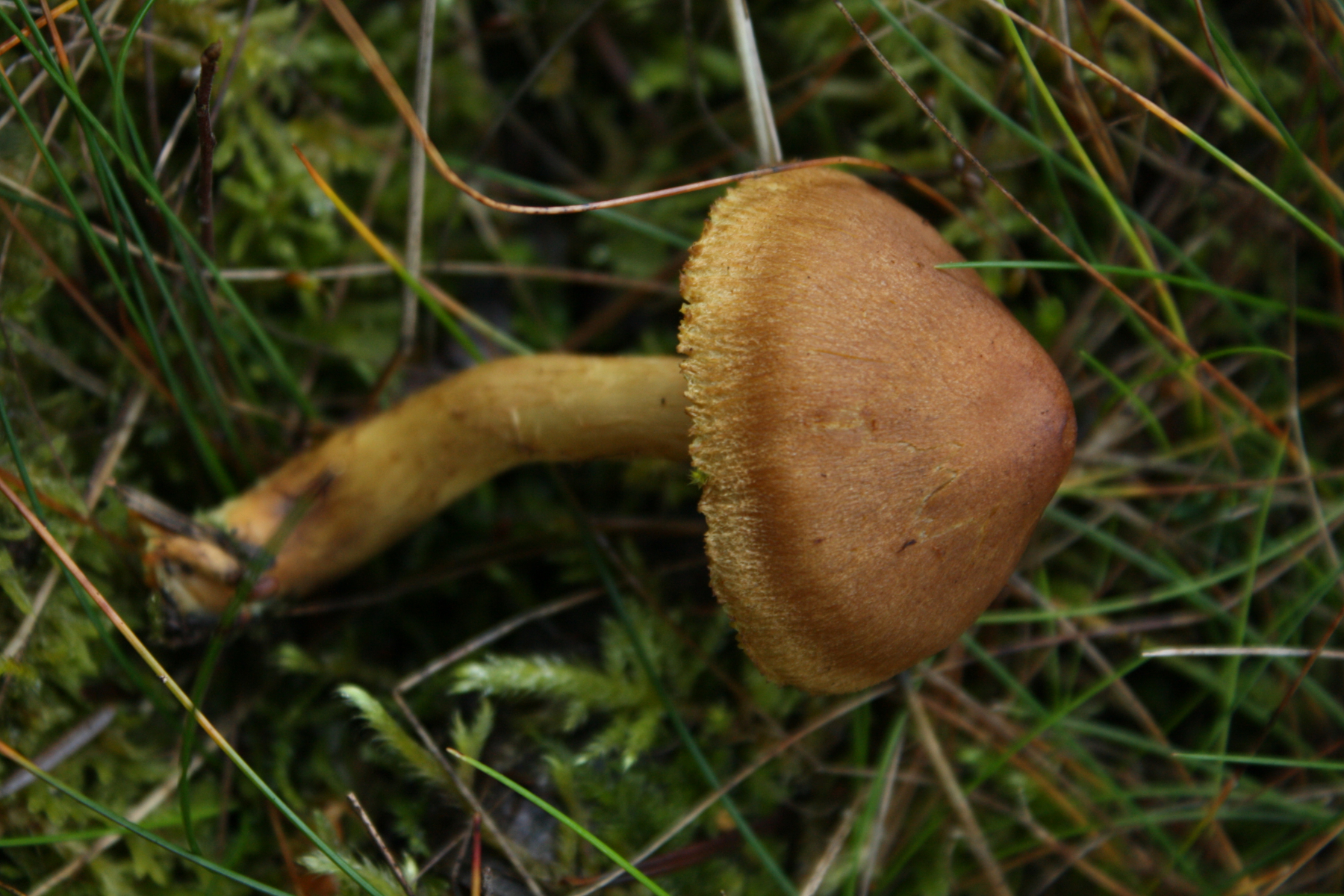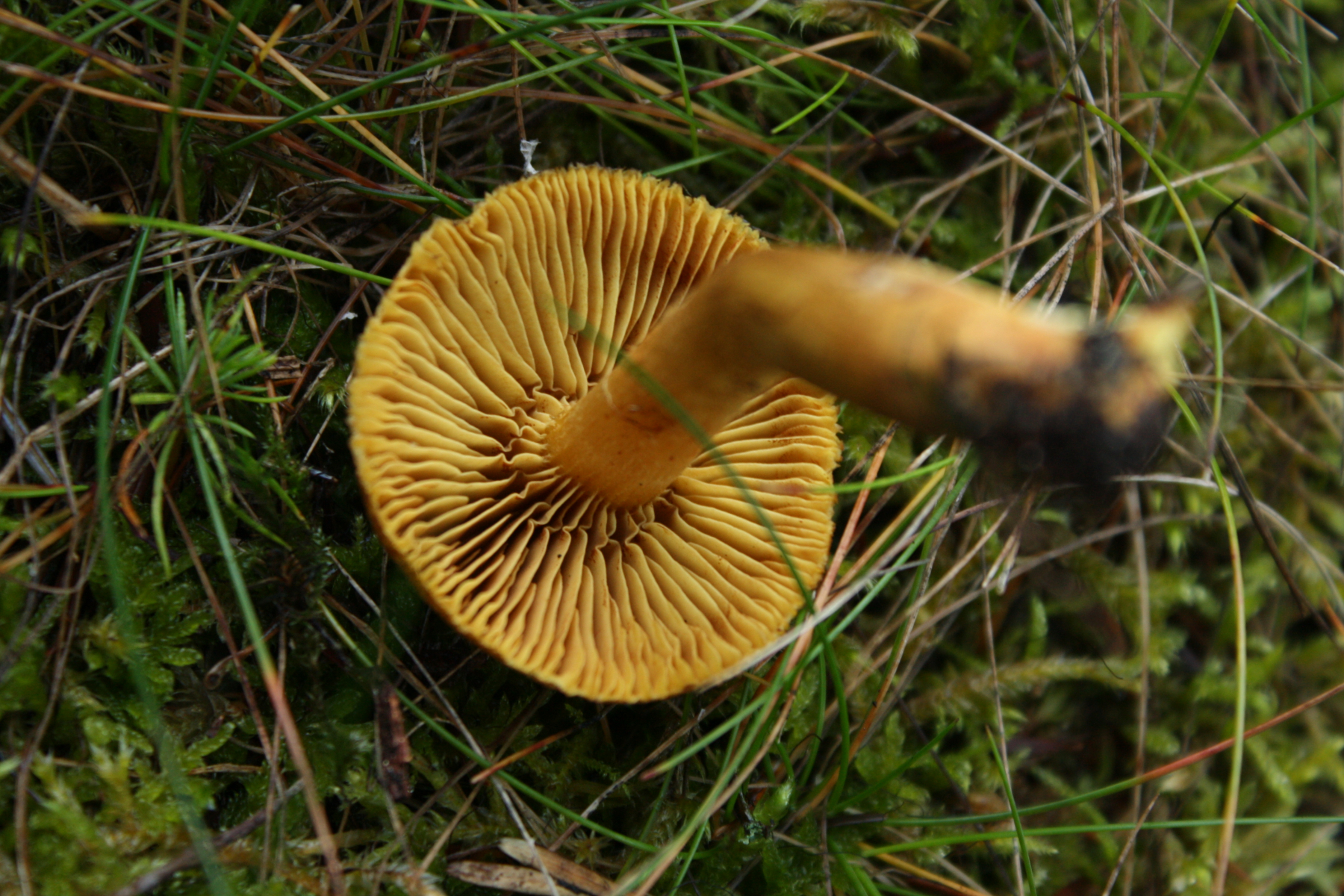 Für mich hast du trotzdem eine Dermocybe gefunden; wahrscheinlich C. croceus. Die leuchtend olivgelben Lammellen sind auf den Fotos gut zu sehen. Meine Inocybe-Idee will ich aber auch nicht ausschließen. Mikroskop hast du nicht, denn dann könnten wir zumindest sehr schnell die Gattung klären.