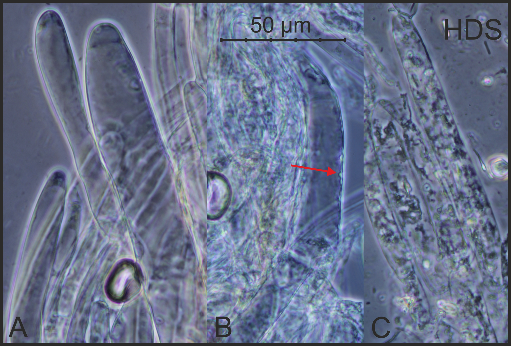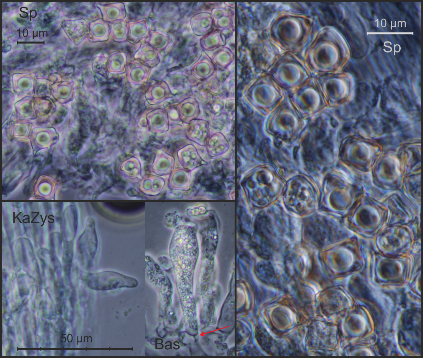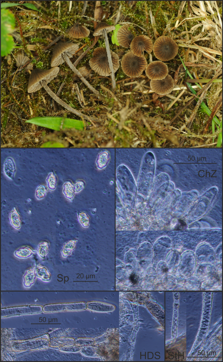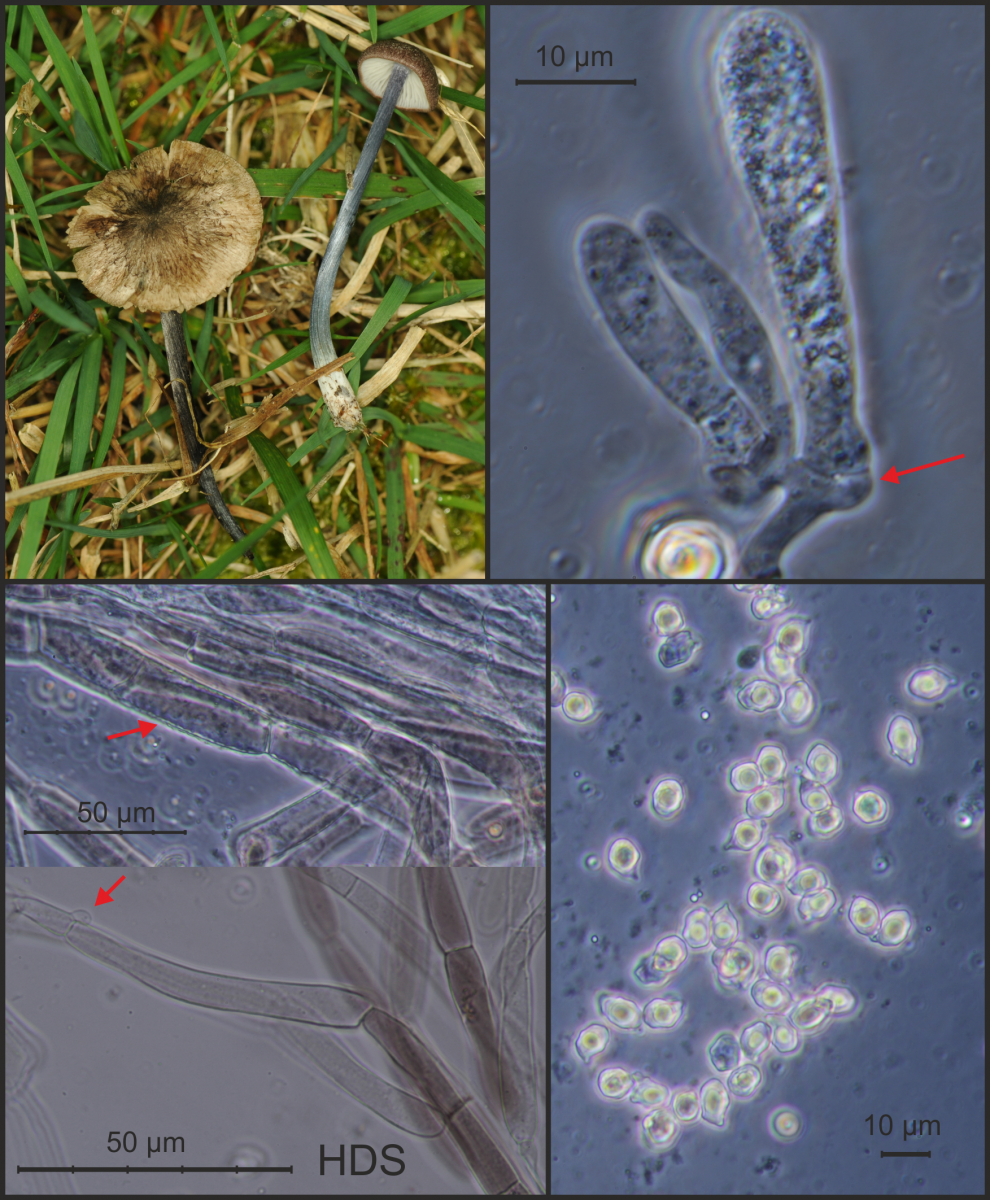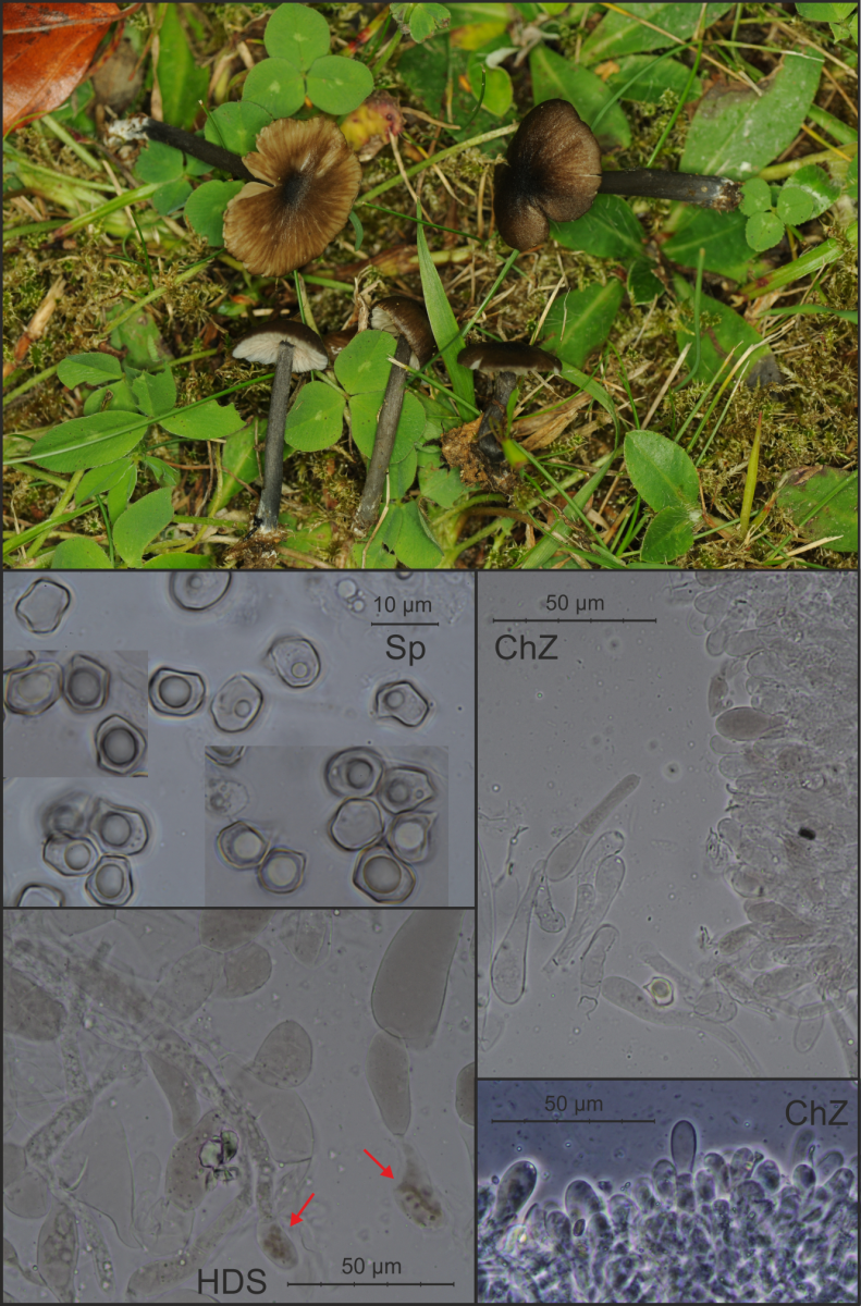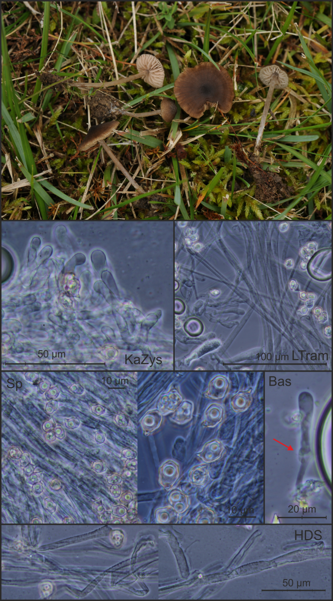 Geschlüsselt mit G und FE5, abgeglichen mit E.Ludwig (2007) und ÖZP 4 (1998). Cheilozystiden vorhanden, gelegentlich mit bräunlichem Inhalt, Stiel nicht wie poliert, Sporen bis max! 11 µm lang, Pigment intrazellulär und vakuolär (? –“ siehe Dokumentation, rote Pfeile), nirgends Schnallen beobachtet.