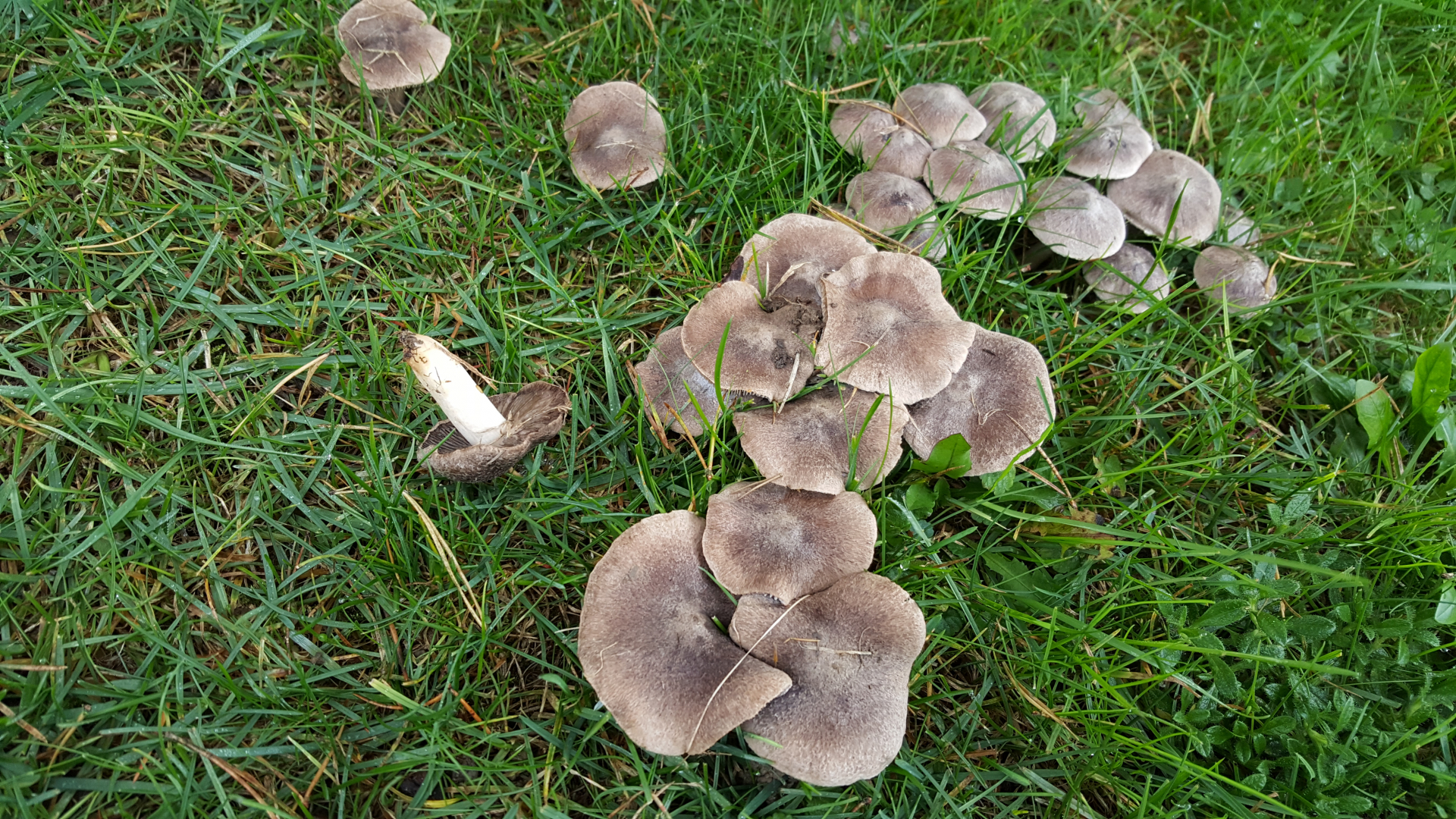 es kommen drei bis vier Erdritterlings-Arten in Frage. Zur genaueren Bestimmung der Art muss man den Geruch der Pilze prüfen (geruchlos oder nach ranzigem Mehl) und nachforschen, ob gelbe Flecken an den Pilzen sind oder nicht.