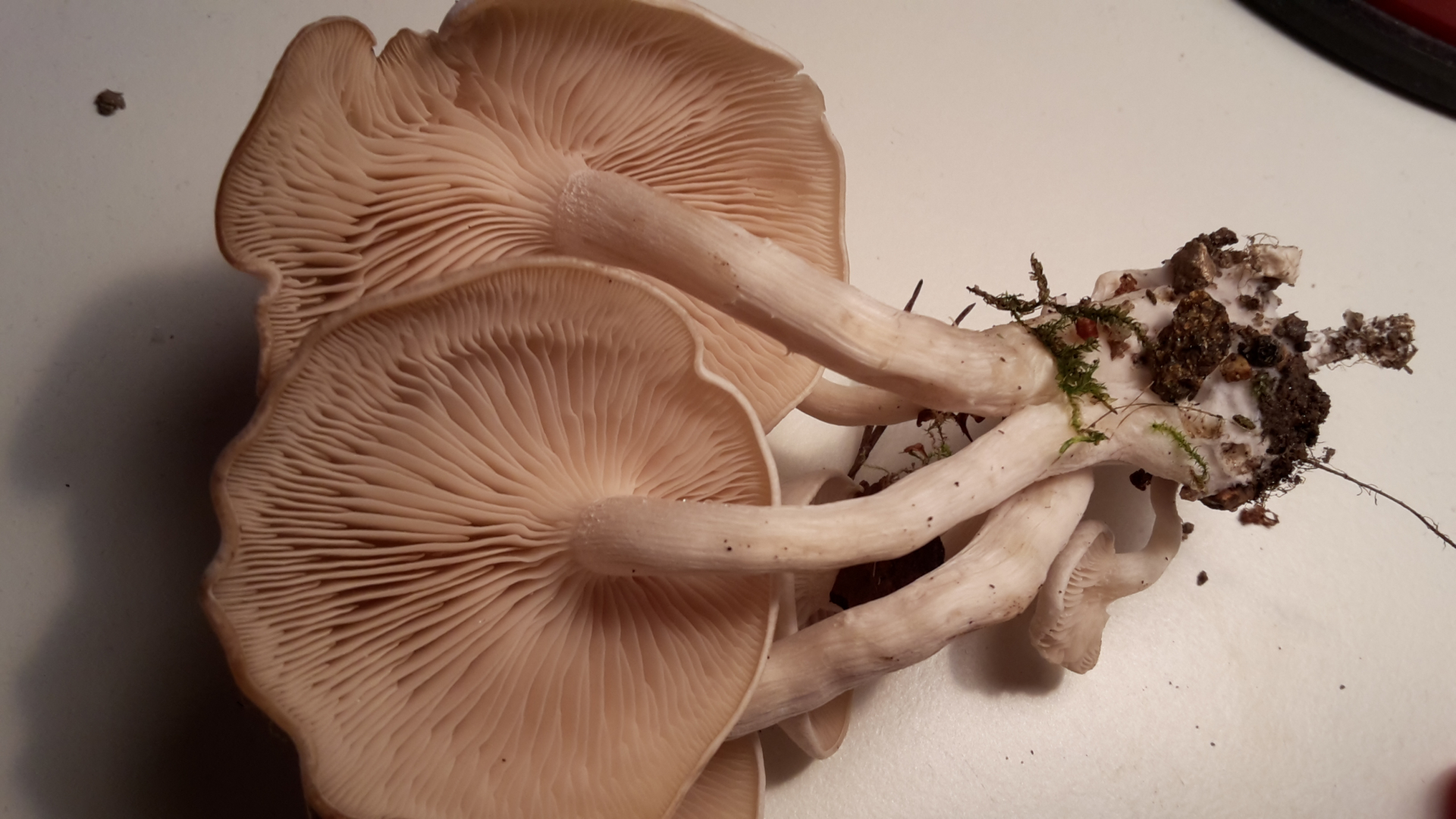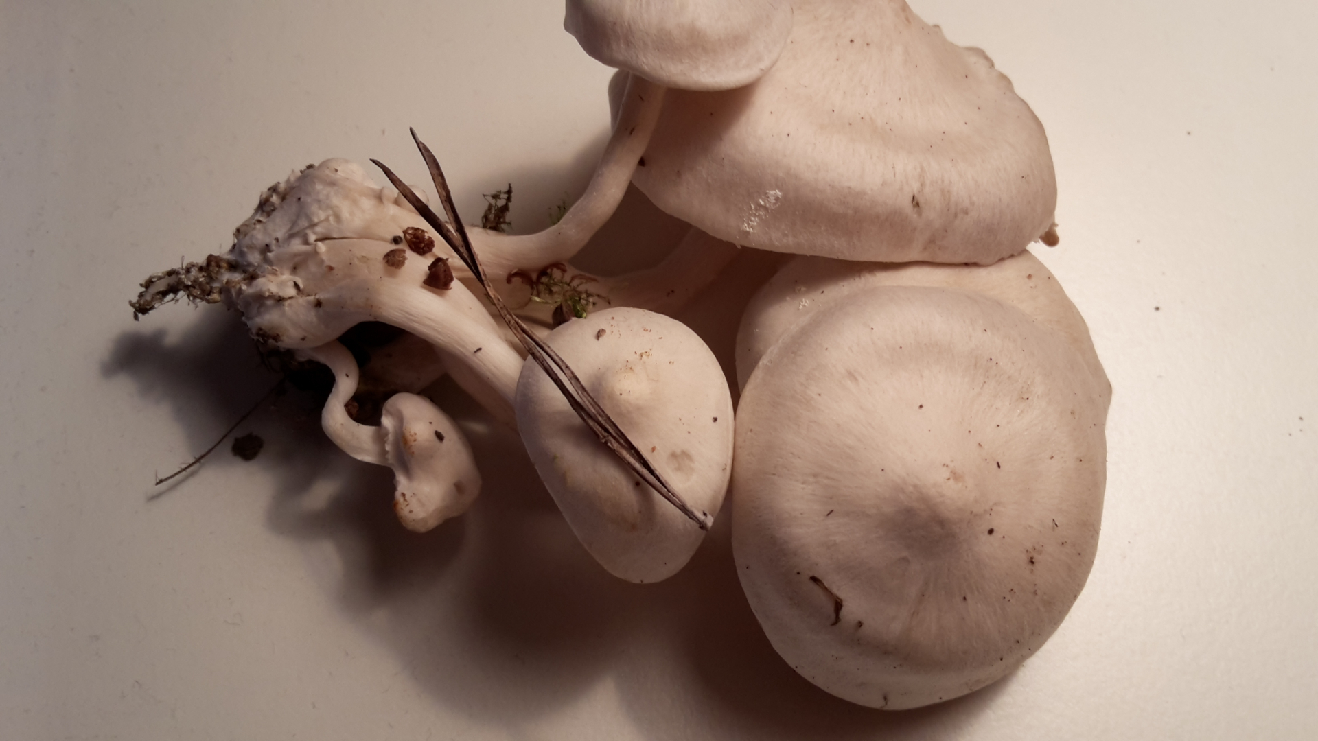 • An dem weißen habe ich leider nicht gerochen. Er wuchs auf jeden Fall in der Nähe der braunen Raslinge / Büschelraslinge. (Wie lautet der korrekte Begriff oder sind das zwei verschiedene Arten?)