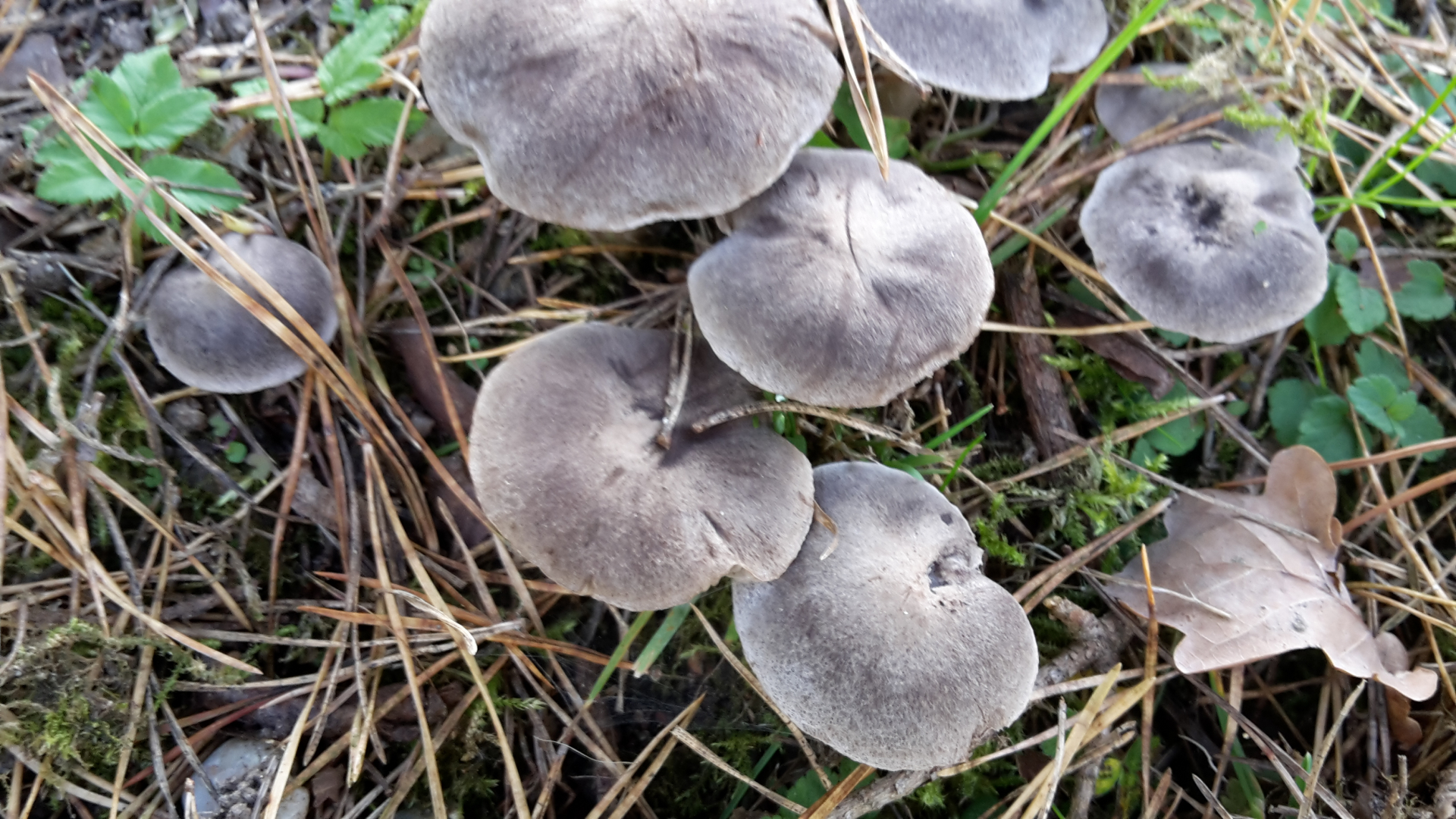 Anyway: Es sind Erdritterlinge, aber hier braucht's auch den Geruch. Der wird in diesem Fall nichtssagend sein (also auch zerrieben nicht nach Mehl), außerdem wird sich der PIlz nirgendwo auch nach einem Tag liegenlassen verfärben (weder rot noch gelb noch blau), Kiefern standen auch dabei, und es ist ganz einfach Tricholoma terreum (Gemeiner Erdritterling). Das passt optisch einfach viel zu gut.