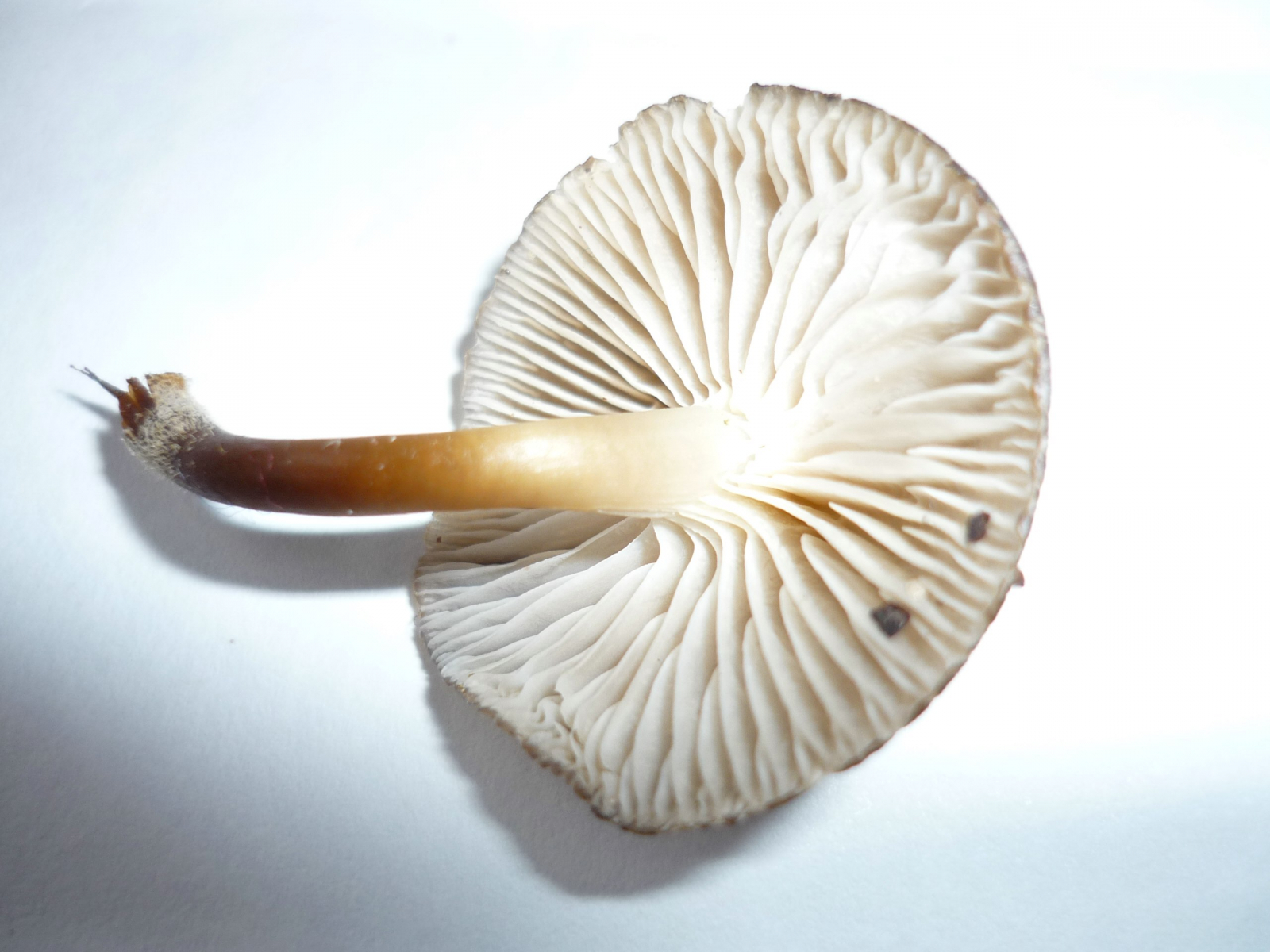 An einem Stumpf wuchsen viele dieser Pilze in Büscheln, der Hut ist ca. 2 cm groß - ein Helmling? Wenn ja, welcher?