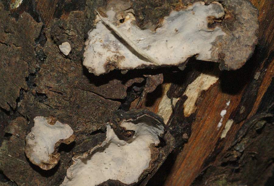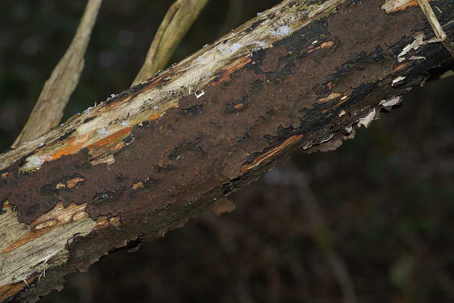 Auch hier bin ich mit meinem Vorschlag Rußbrauner Schichtpilz Lopharia spadicea überhaupt nicht sicher.