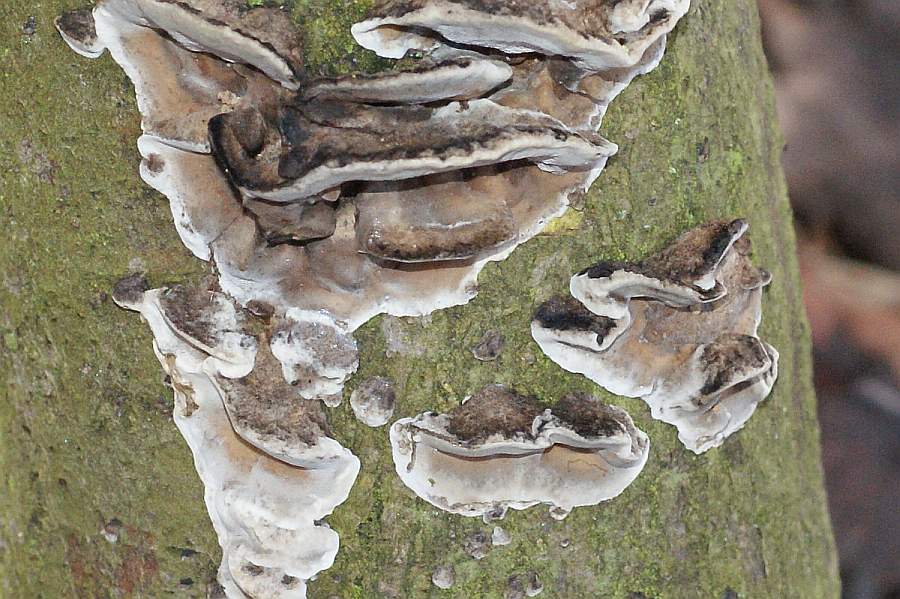 Im selben Gehölz fand ich an der Schnittfläche eines (Eichen?-)Stubbens diese Pilze: