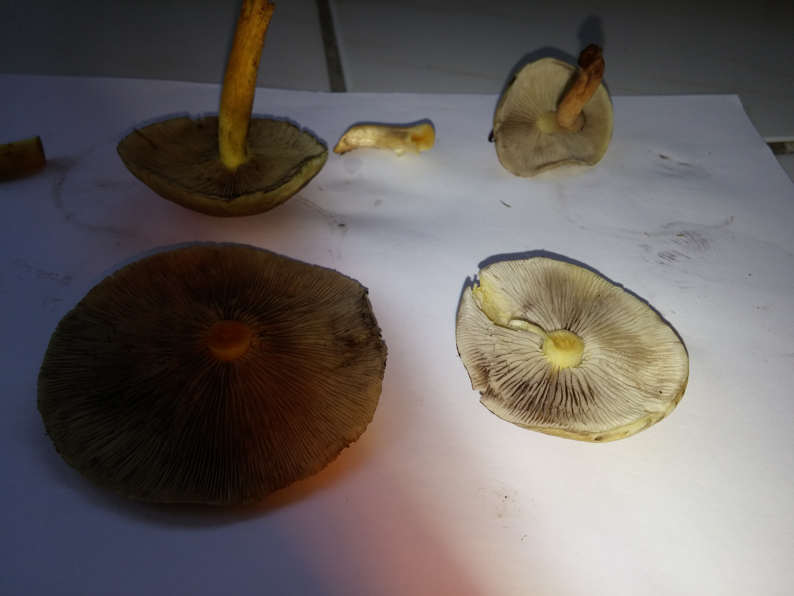 Ich weiß zwar nicht ob man das auf folgendem Bild besser erkennen kann aber da sind die stiele noch dran. An denen war keine grüne oder gelbe farbe zu sehen (rechts), im gegensatz zu links (leider etwas dunkel geworden). Und wie gesagt, geschmacklich habe ich direkt den unterschied geschmeckt. Rechts mild, pilzig und links sehr bitter. Auf dem zweiten bild sind sie nochmal mit stielen zu sehen (die linken großen schon ziemlich alt, die habe ich auch nichtmehr verwendet). -