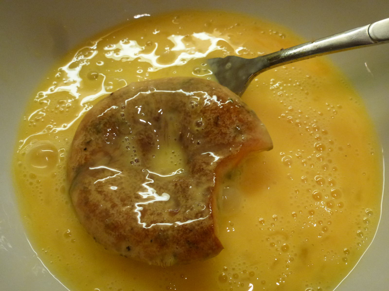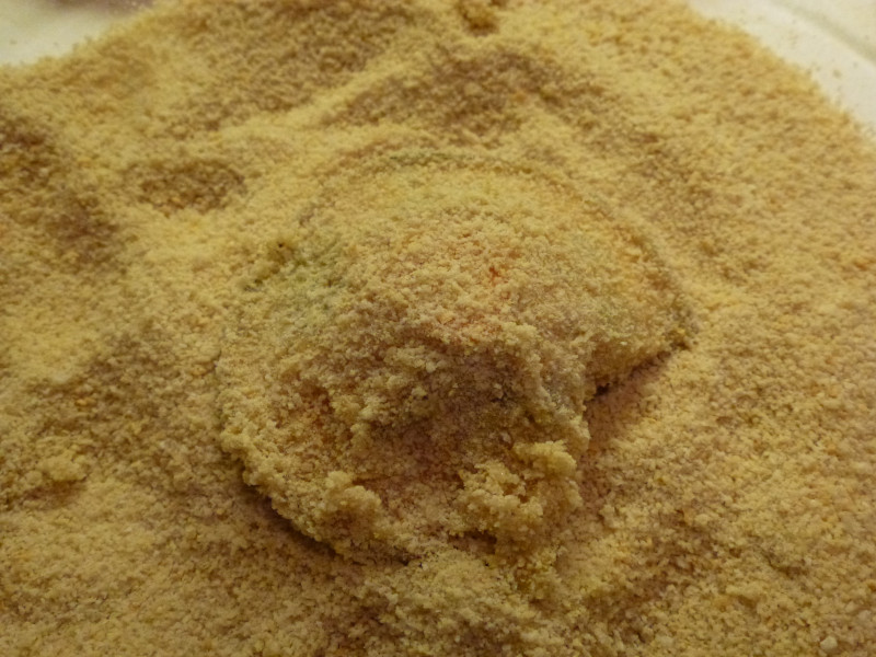 Eier in einer Schüssel verkleppern, Reizkerhüte eintauchen, dabei die Lamellenseite gut mit dem Ei tränken (mit einer Gabel immer wieder darüber geben). Anschließend in Semmelbrösel wenden, überschüssiges Semmelmehl abklopfen aber darauf achten, dass überall Semmelbrösel haften bleiben.