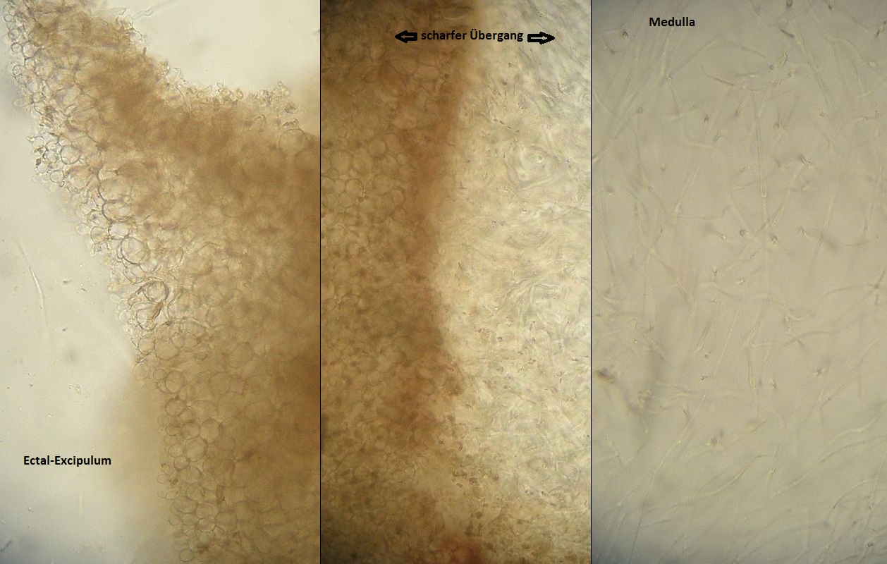 Der hat noch keinen belastbaren Namen. Ich bin auch nicht ganz sicher, ob das alles die gleiche Art ist und von welchem Standort die kommen. Mikroskopisch sehen der etwas dunklere (jüngere) und der etwas hellere größere Fruchtkörper weitestgehend gleich aus.