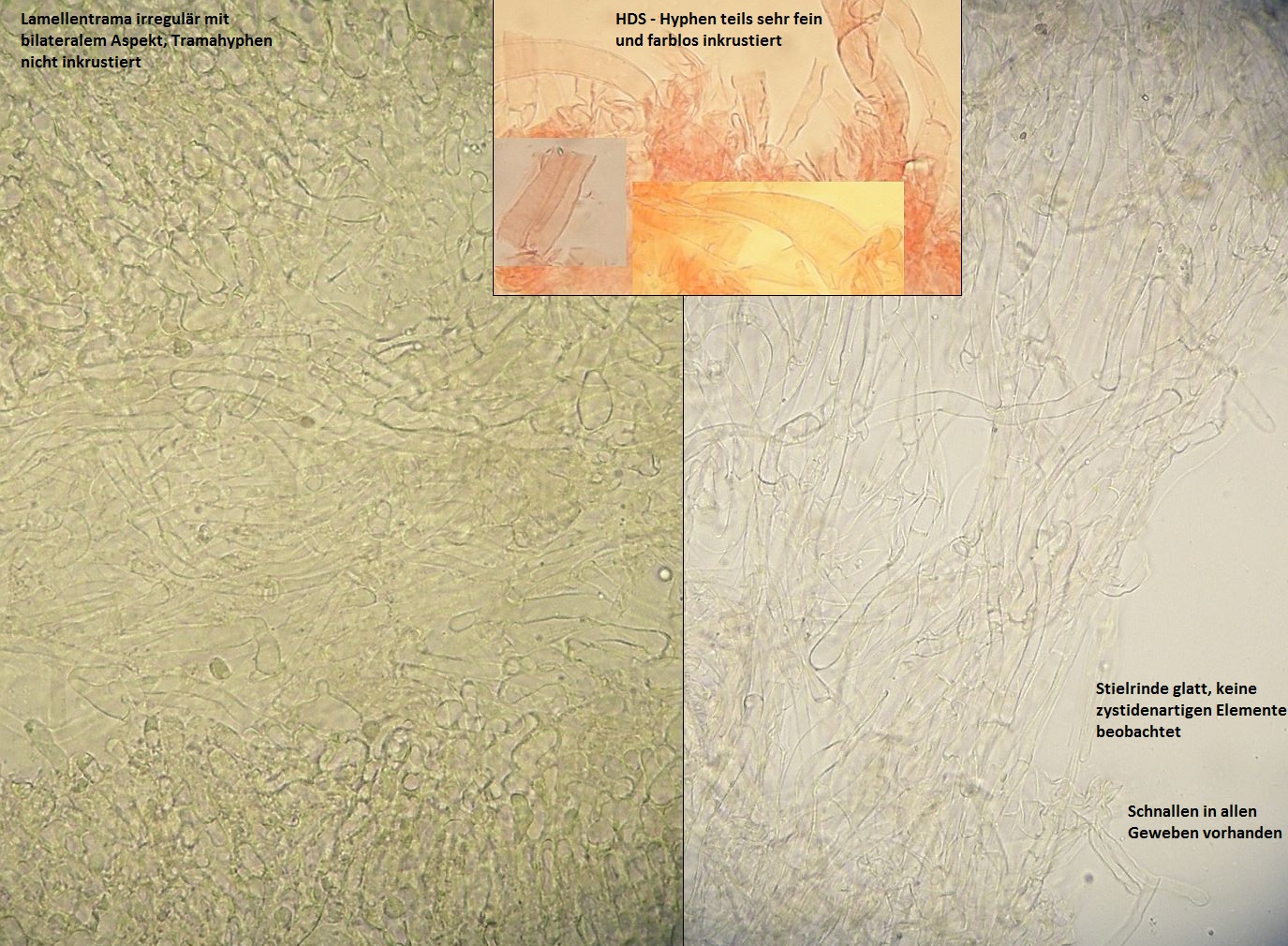 Monomitisch, ohne Schnallen, keine Zystiden (aber Zystidiolen), rundliche Sporen bis 6,5 µm