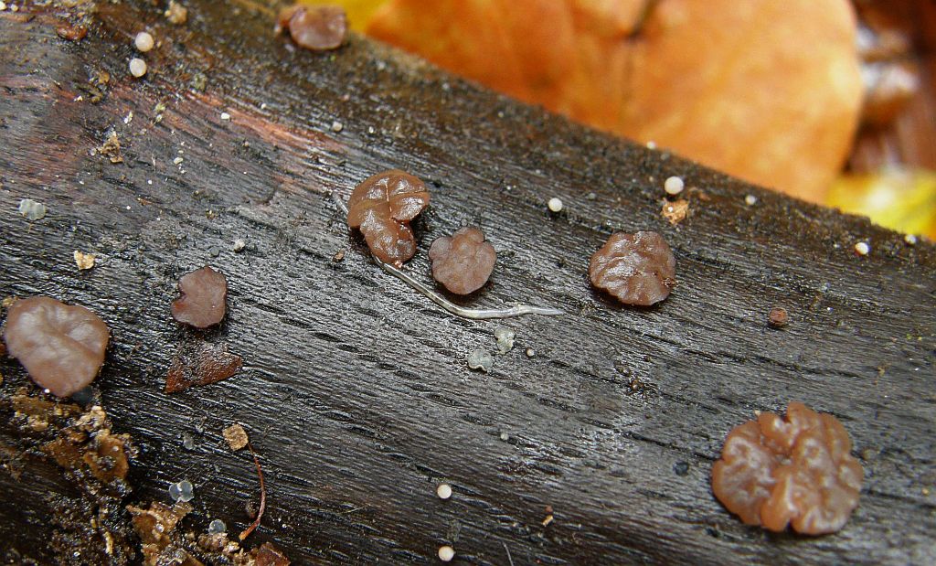 Und die hübsche Ascocoryne solitaria (Graubrauner Gallertbecher):