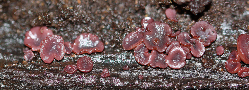 Einmal eine schöne Kollektion von Ascocoryne inflata (Dickkopfparaphysen - Gallertbecher):