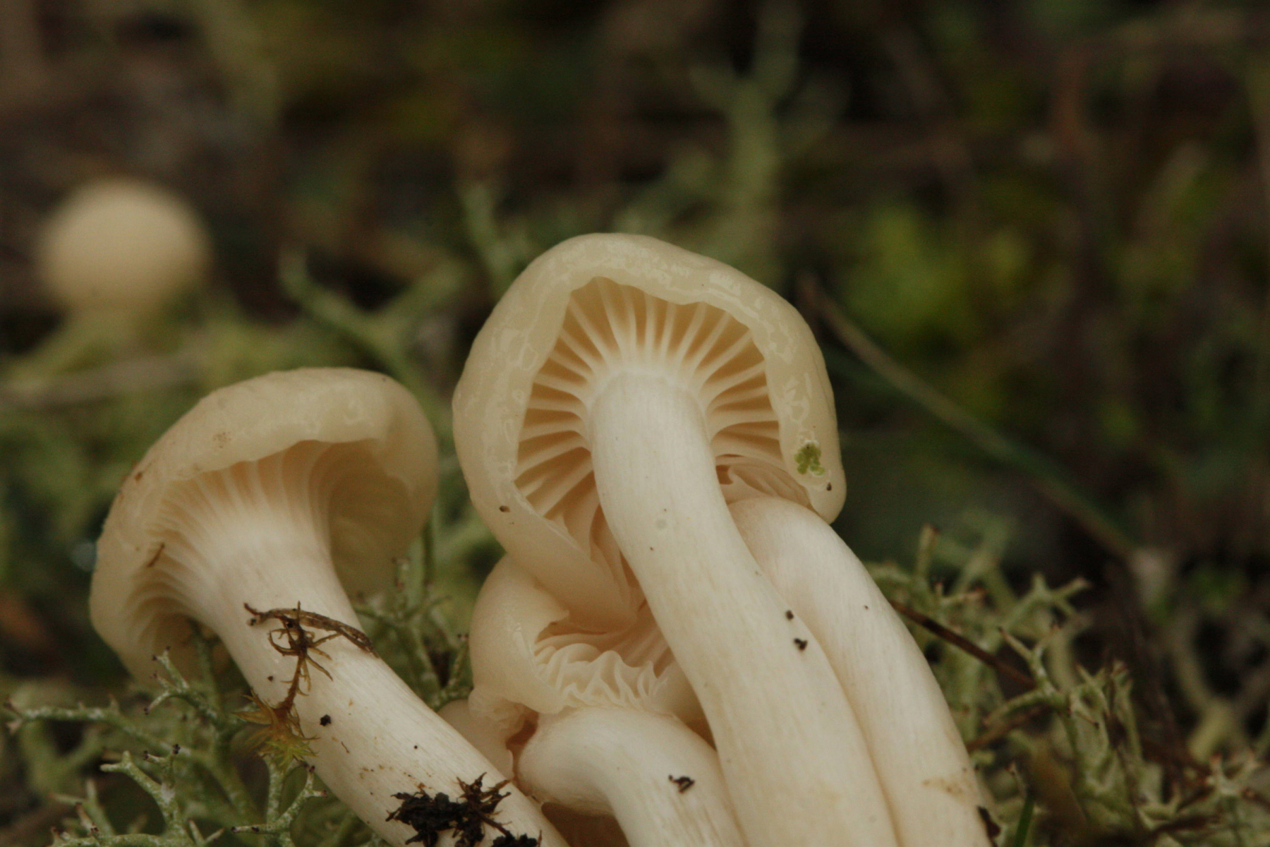08. Weiße Ellerlinge auf einem Flechtenpolster - wuchsen büschelig.