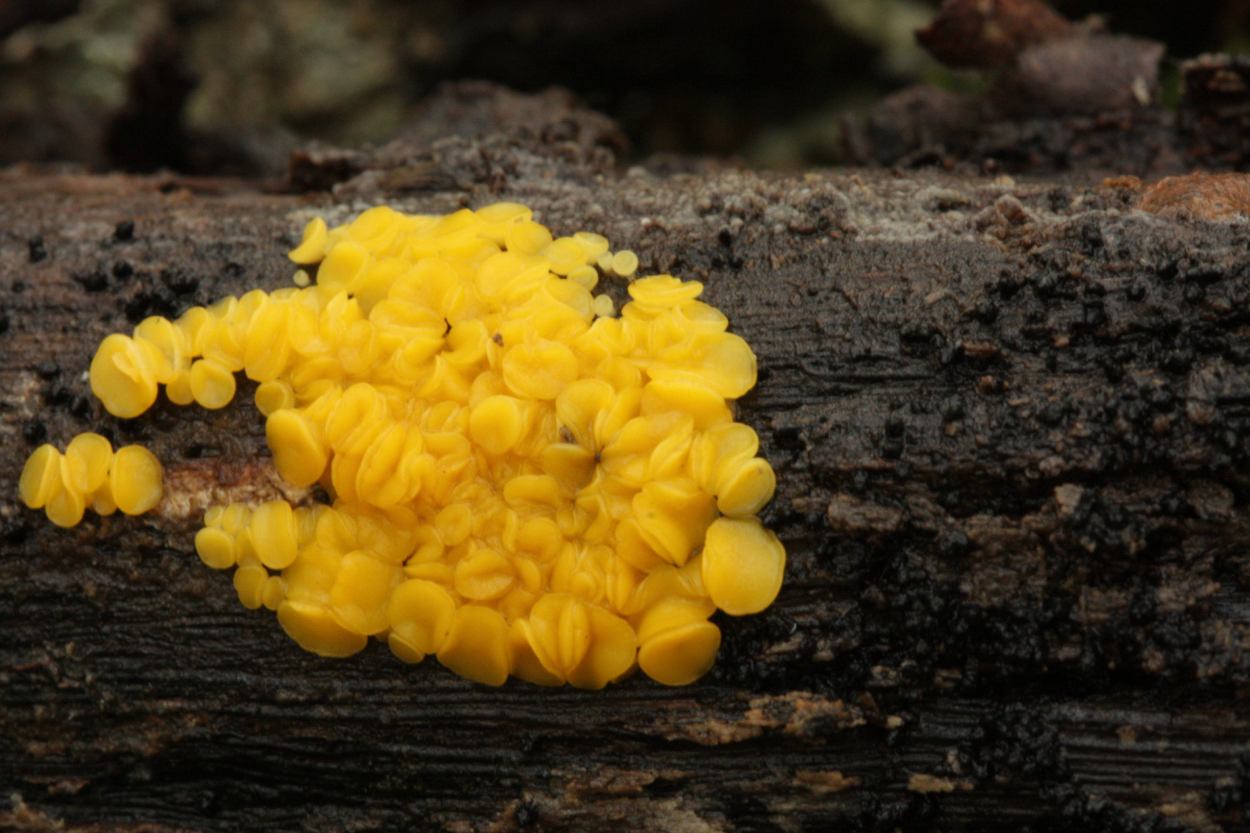 13. Leuchtende kleine Becherchen auf Holz - makroskopisch würde ich einfach mal Zitronengelbes Reisigbecherchen (Bisporella citrina) dazu sagen
