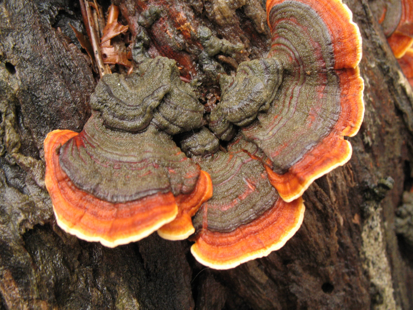 12. Orangeseitlinge (Phyllotopsis nidulans). Ein für mich seltener Fund, auf dem Peloponnes hatte ich den noch nicht.
