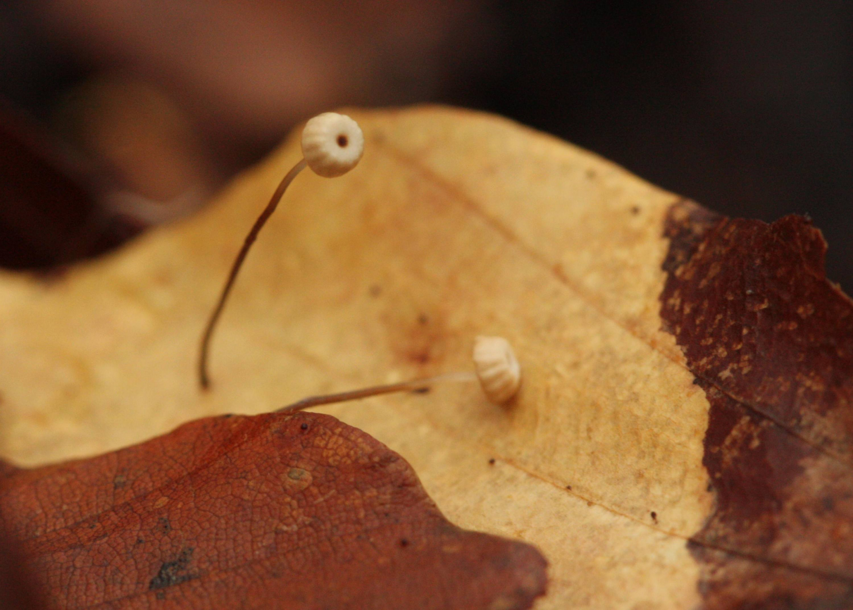 24. Ein kleiner Schwindling (Marasmius) auf Buchenblatt