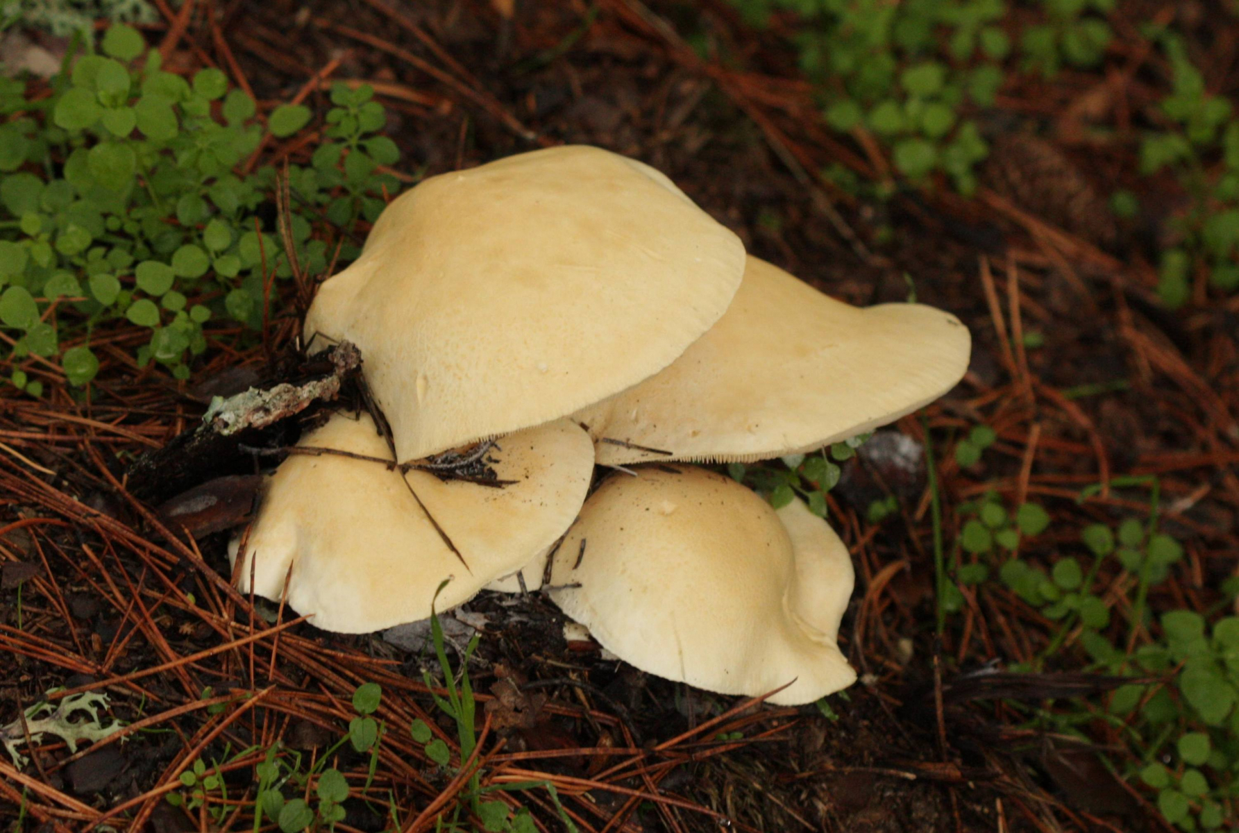41. Unter einer der Kiefern dann ein Pilz, der mir >hier< schon Kopfzerbrechen bereitet hat. Es scheint ein Krempentrichterling (Leucopaxillus) zu sein. Auffällig groß, auffällige Farbe. Sehr schöner Pilz.