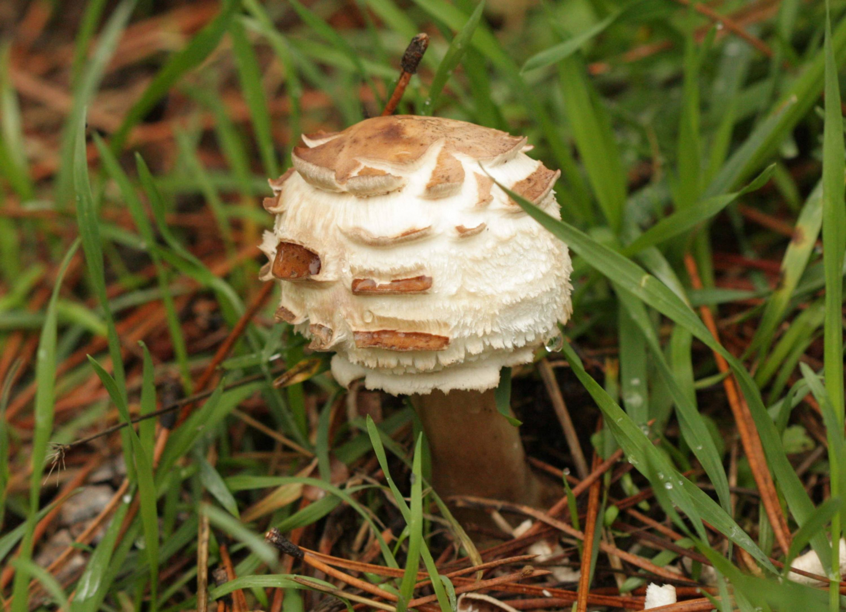43. Noch ein Erstfund: eine riesige Gruppe Safranschirmlinge (Chlorophyllum rachodes). Fein, das Röten auch mal in der Realität beobachten zu können!
