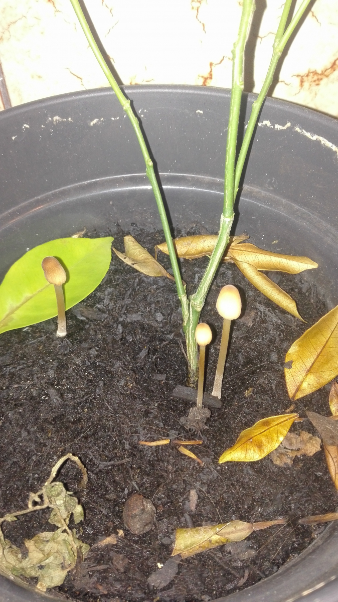 naja das ist das erste bild heute morgen.um 8das 3 stunden später.Das ist ein Pilz, der die Pflanze nicht schädigt. Evtl. ein Häubchen oder Tintling oder etwas aus der Verwandschaft.