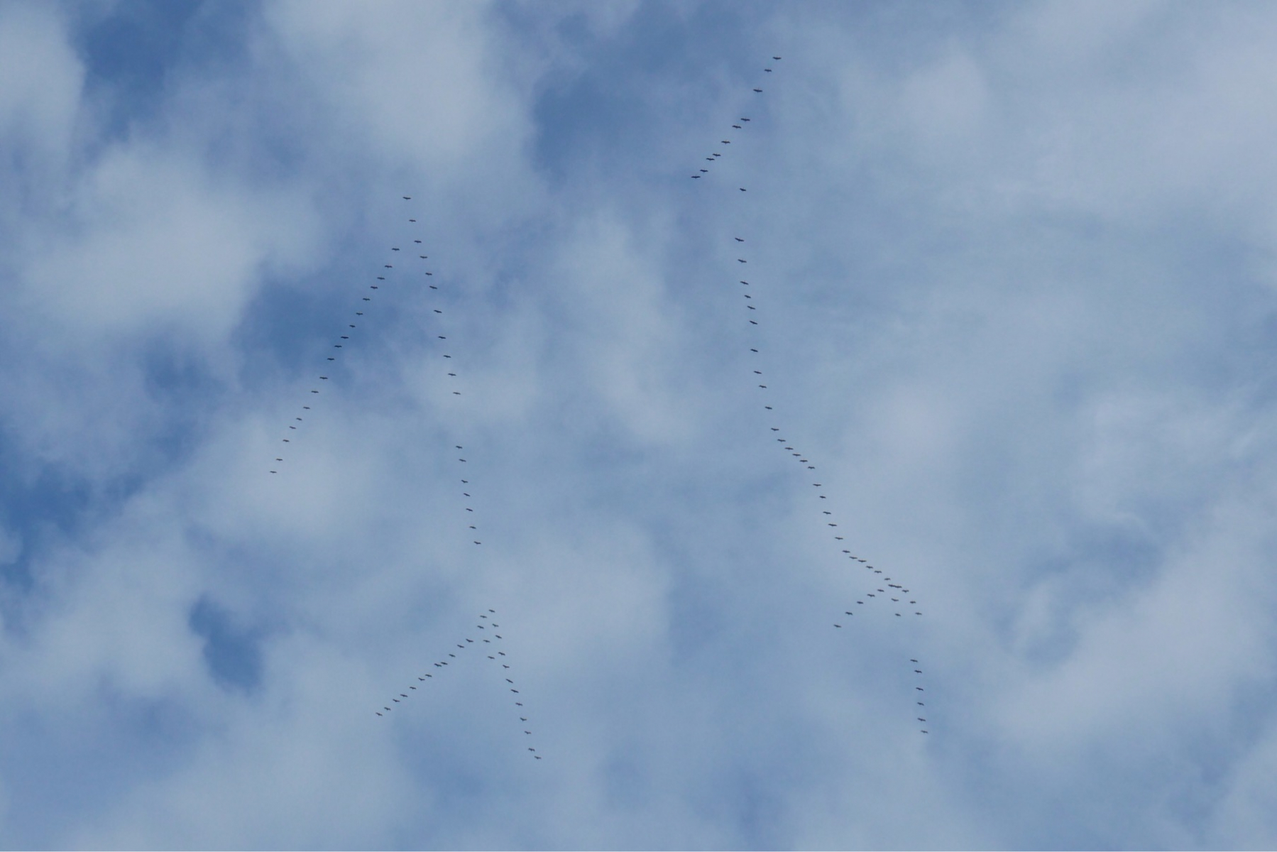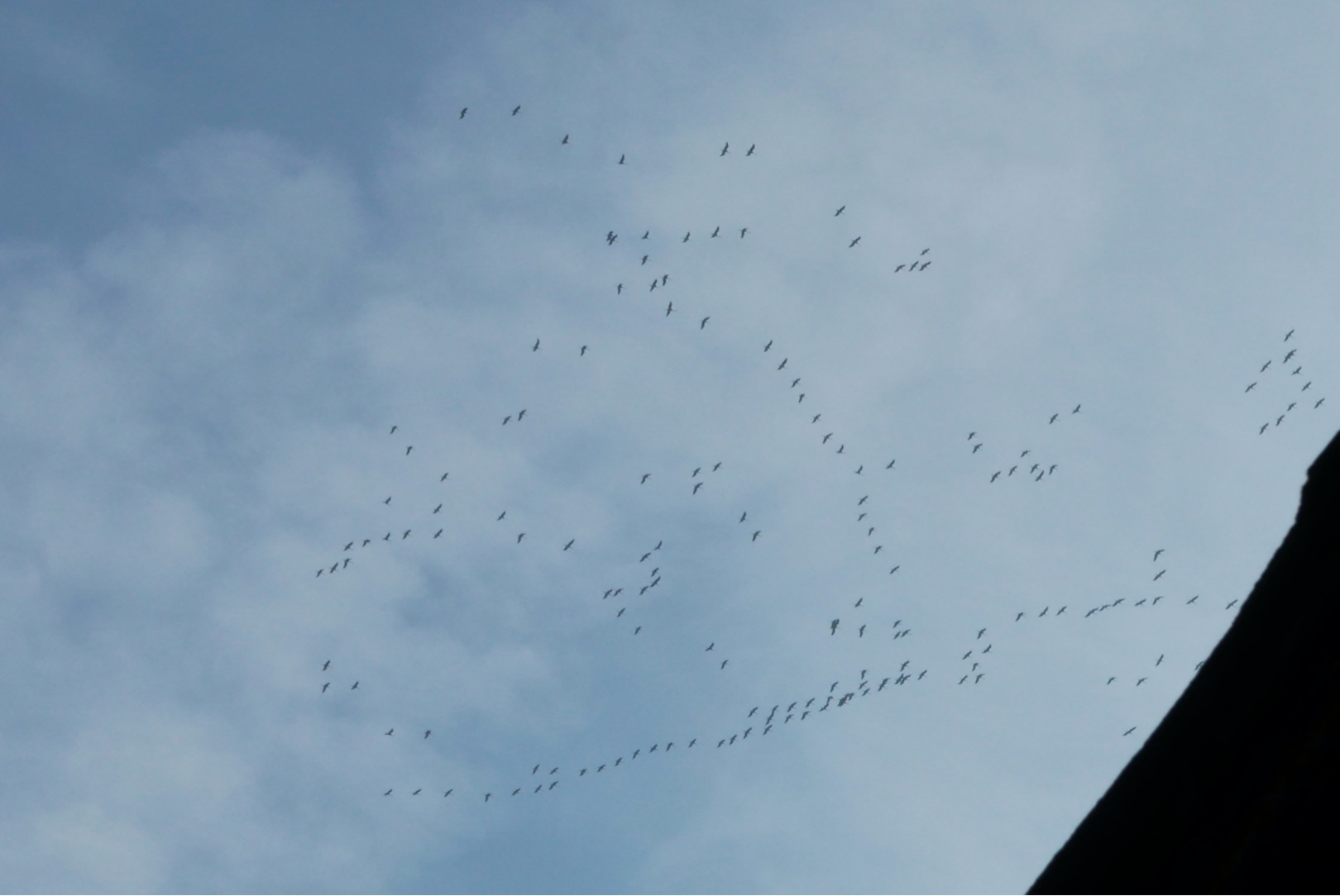 Ein großer Trupp drehte über Nachbars Haus ab und zog Kreise, bis einige andere kleine Gruppen aufgeschlossen hatten.