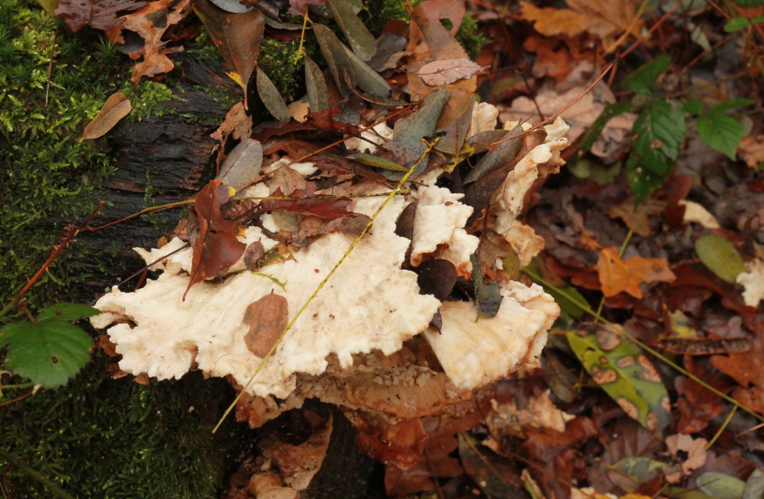 Ansonsten haben wir viele gut erhaltene Pilzleichen vom Spätherbst gesehen, u.a. Schwefelporlinge, Parasole, Nebelkappen, Violette Röttelritterlinge, Hallimasche, usw.