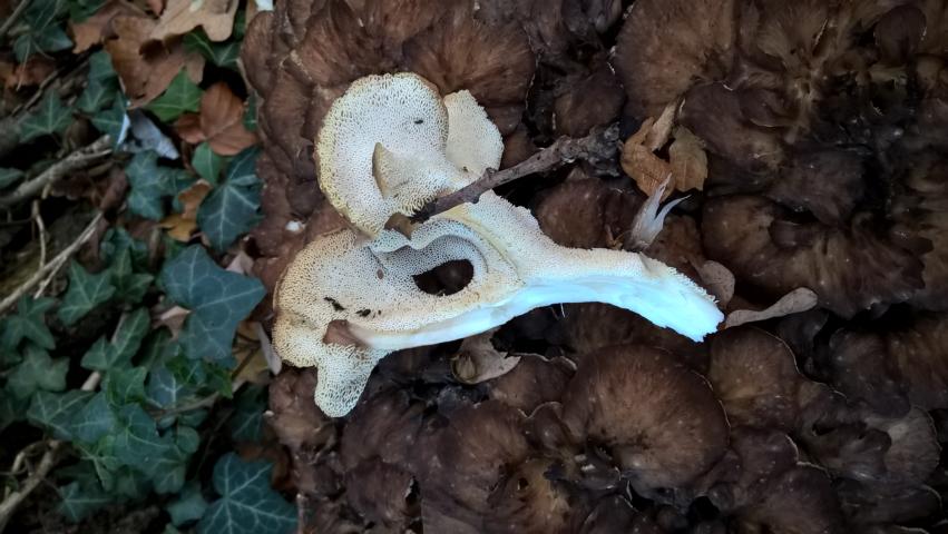Für mich auf jeden Fall ein Erstfund, bin mir aber nicht sicher, ob es sich um einen Eichhasen oder einen Klapperschwamm handelt.