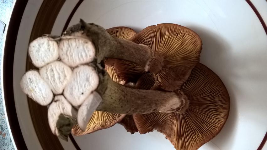 Dann gab es noch reichlich Hallimasch. Bin mir nur nicht sicher, ob es sich um den Gemeinen Hallimasch [font="Arial"]ARMILLARIA SOLIDIPES[/font] handelt. Die Lamellen fand ich auffallend gelblich