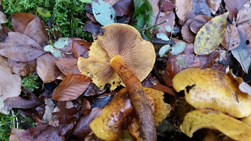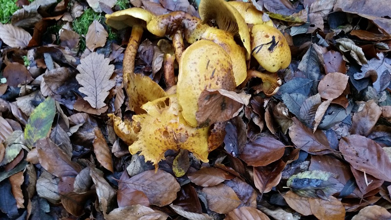 bei 1) denke ich an den Geflecktblättrigen Flämmling (alias Antichrist)