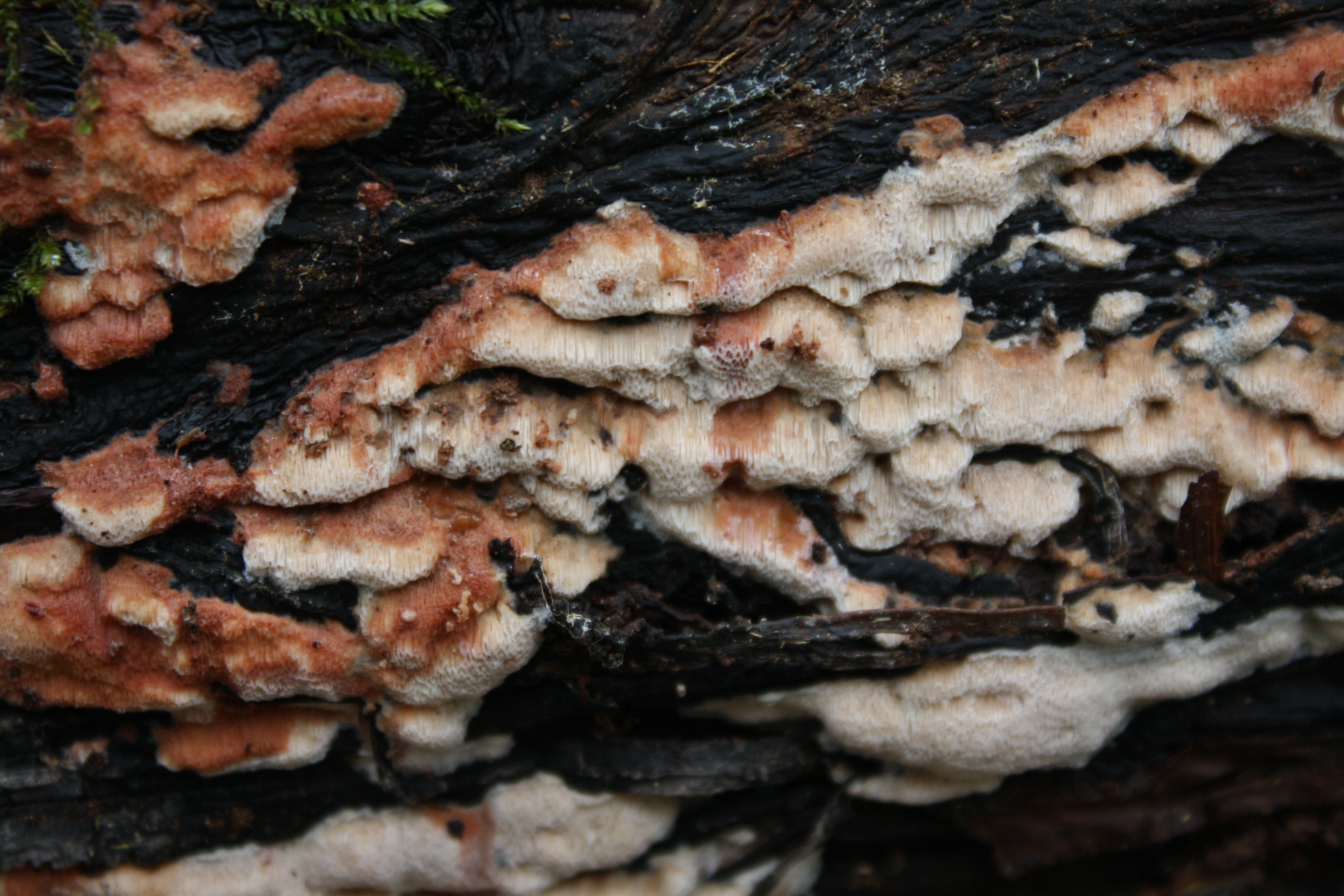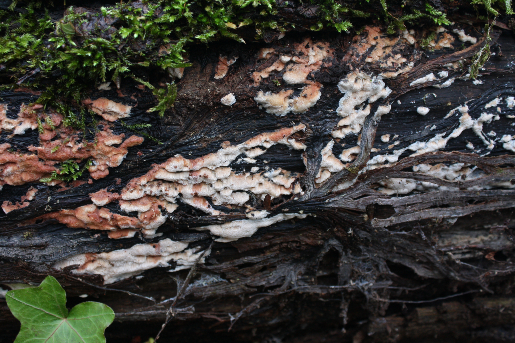 Ich finde Physisporinus sanguinolentus sowohl an Laub- als auch an Nadelholz, und auch gerne mal auf Detritus (Blätter usw.) übergehend.LG, Pablo.