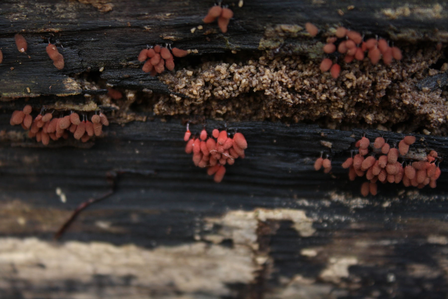 Ich bin da bei Pablo. Aufgrund des nicht deutlich expandierenden Capillitiums und der eher pinkroten als ziegelroten Farbe bin ich auch bei Arcyria denudata. Natürlich müsste man es mikroskopisch oder alternativ durch Ullas Draufsicht absichern (lassen).