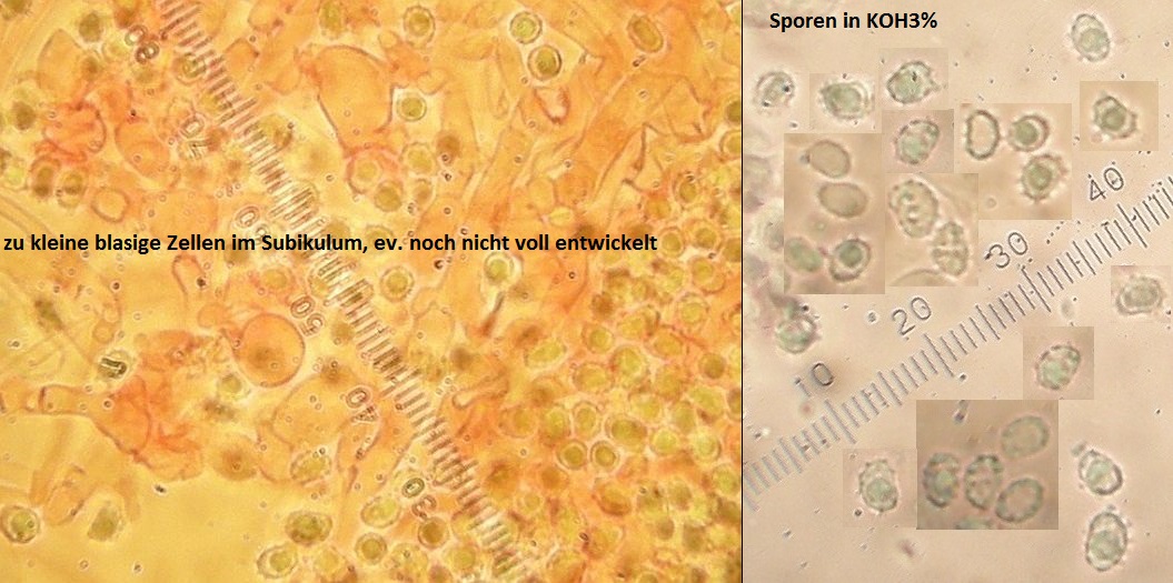 Ein paar präparate später hatte ich dann auch da die fetten, blasigen Zellen im Subikulum. Interessant übrigens, daß die nicht in allen Teilen des Fruchtkörpers ausgeprägt sind und eben tatsächlich nur an ganz bestimmten Stellen vorkommen. In den Rhizomorphen zB braucht man danach gar nicht zu suchen.