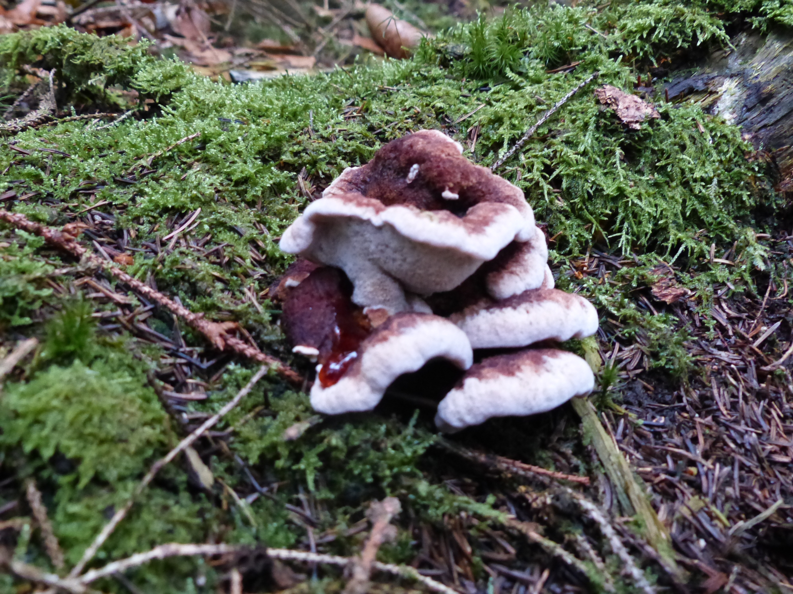 Fundort: Nadelwald, auf Totholz, vermutlich Fichte, neben einem Baumstubben,