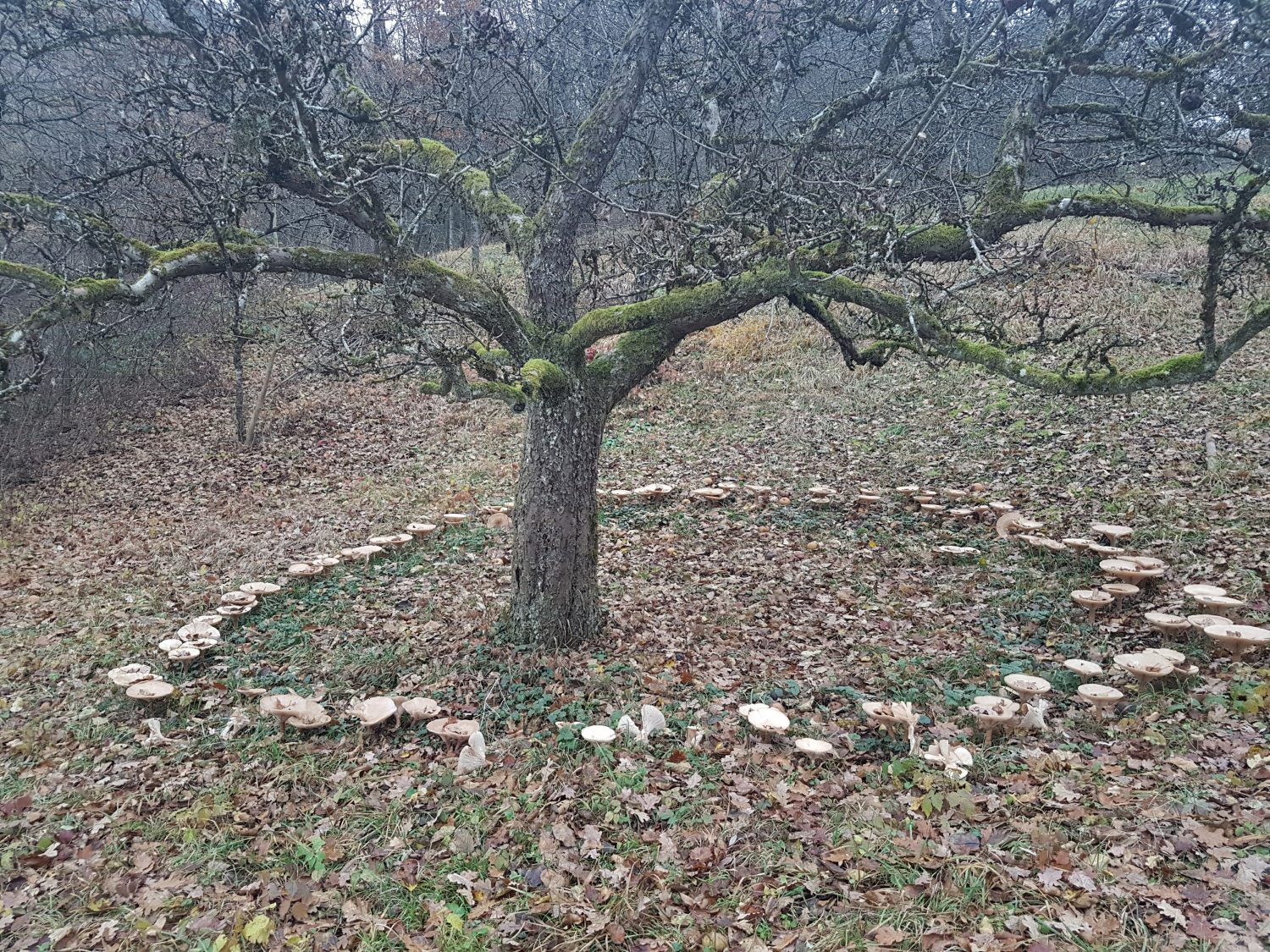 Pilzkreis um einen Baum, Zufall?