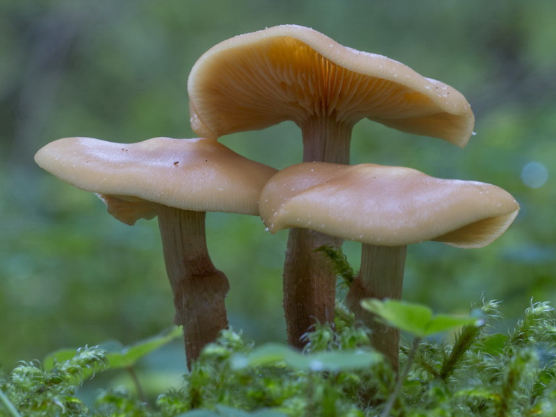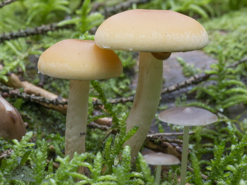 4. Schwarzpunktierter Schneckling (Hygrophorus pustulatus), zum Sammeln zu viel bücken für zu wenig Geschmack. Er wächst hier zwischen den Seidigen Rißpilzen und kann den unvorsichtigen Sammler schon mal auf's Glattein führen.