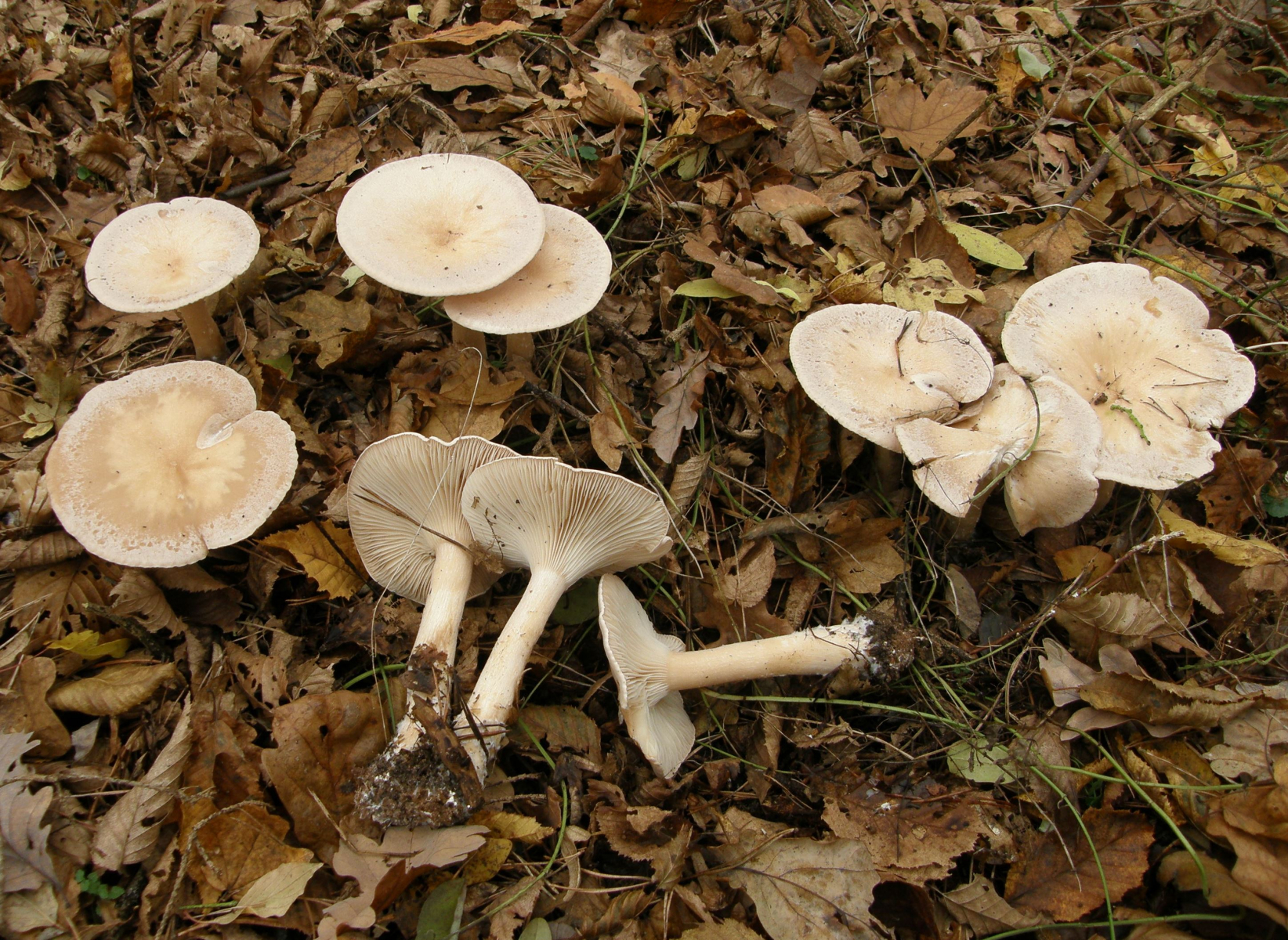 Wenn man jetzt nach Verwechslungspartnern suchen wollte, wären eher die ockerbraunen Trichterlinge hier angesagt. Also, z.B. C. gibba und alles was damit verwechselt werden kann - darunter auch C. amoenolens. Hier ist zwar die Wahrscheinlichkeit auch gegen Null tendierend, dass es sich um etwas aus dieser Artengruppe handelt, aber es wäre immer noch wahrscheinlicher als phyllophila. Ich füge das nur an, damit man mal überlegt, ob es damit getan wäre, wenn man C. phyllophila ausschlösse. Sorry, aber wer solche (Lamellen-) Pilze isst, sollte viel, viel vorsichtiger sein. Die Verwechslungsmöglichkeiten auch in anderen Gattungen als Clitocybe sind doch deutlich höher als ein einzelnes Bildchen eines Giftpilzes, das man sich vielleicht irgendwo aus einem Anfängerpilzbuch raussucht.