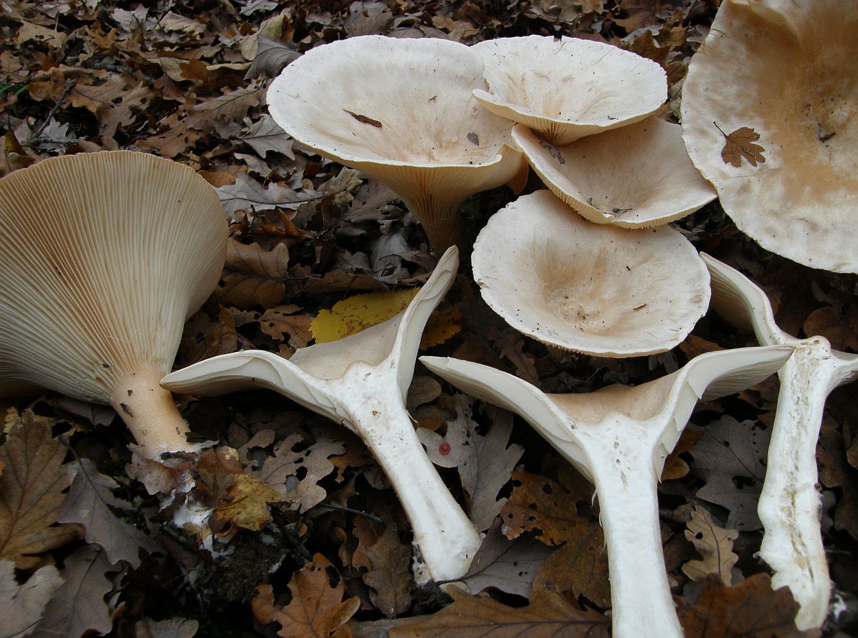 Wenn man jetzt nach Verwechslungspartnern suchen wollte, wären eher die ockerbraunen Trichterlinge hier angesagt. Also, z.B. C. gibba und alles was damit verwechselt werden kann - darunter auch C. amoenolens. Hier ist zwar die Wahrscheinlichkeit auch gegen Null tendierend, dass es sich um etwas aus dieser Artengruppe handelt, aber es wäre immer noch wahrscheinlicher als phyllophila. Ich füge das nur an, damit man mal überlegt, ob es damit getan wäre, wenn man C. phyllophila ausschlösse. Sorry, aber wer solche (Lamellen-) Pilze isst, sollte viel, viel vorsichtiger sein. Die Verwechslungsmöglichkeiten auch in anderen Gattungen als Clitocybe sind doch deutlich höher als ein einzelnes Bildchen eines Giftpilzes, das man sich vielleicht irgendwo aus einem Anfängerpilzbuch raussucht.