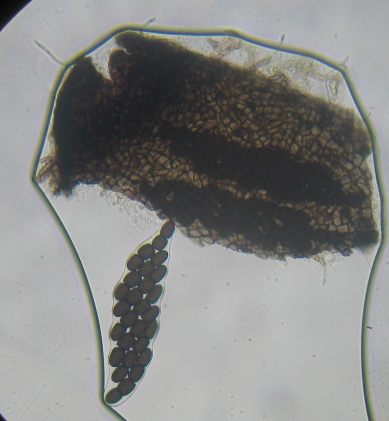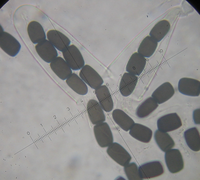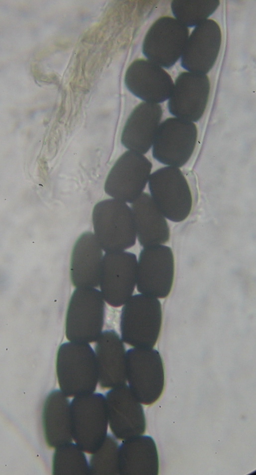 Asci: 180 x 25-32 µ, Sporen biseriat im Ascus, Basis kurzstielig,