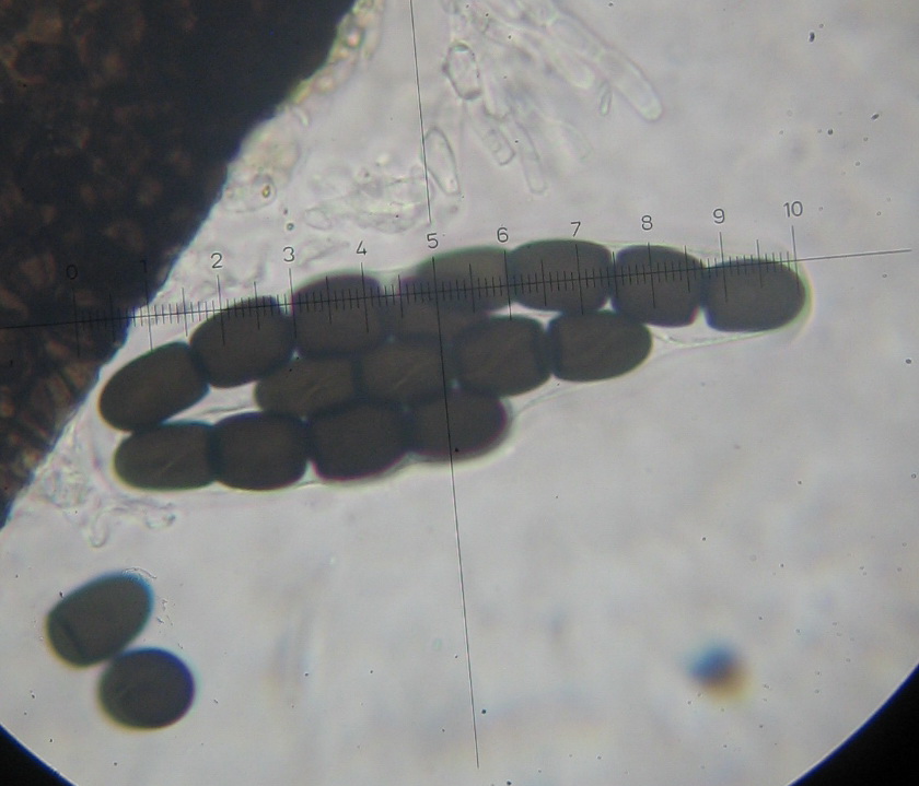 Sporen: 50-55 x 8-11 µ, Keimspalte diagonal S-förmig, nicht leicht in Einzellellen zerfallend,