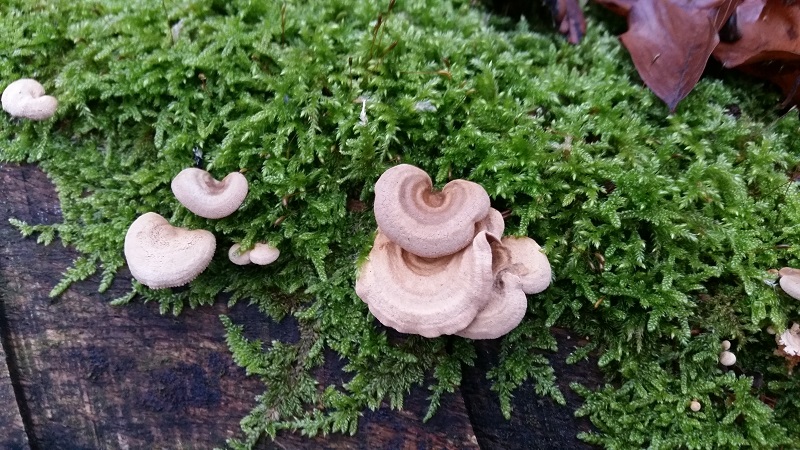 Wenn der oben auf dem Substrat wächst, kann die Zentral-Gestieltheit schon vorkommen, genau wie beim Austernseitling.Nr. 2 finde ich sehr interessant. Ich weiß nicht, ob das Trametes pubescens (Samtige Tramete) sein kann. Mir kommt der Pilz nicht geläufig vor, oder ich habe gerade ein Brett vor ´m Kopf.