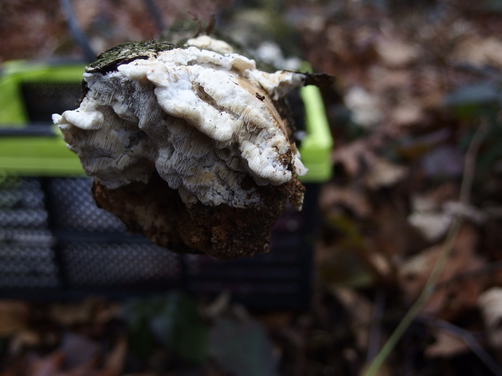 Übrigens: Wenn Antrodia serialis an Laubholz wächst, sieht die schon mal etwas seltsam aus:
