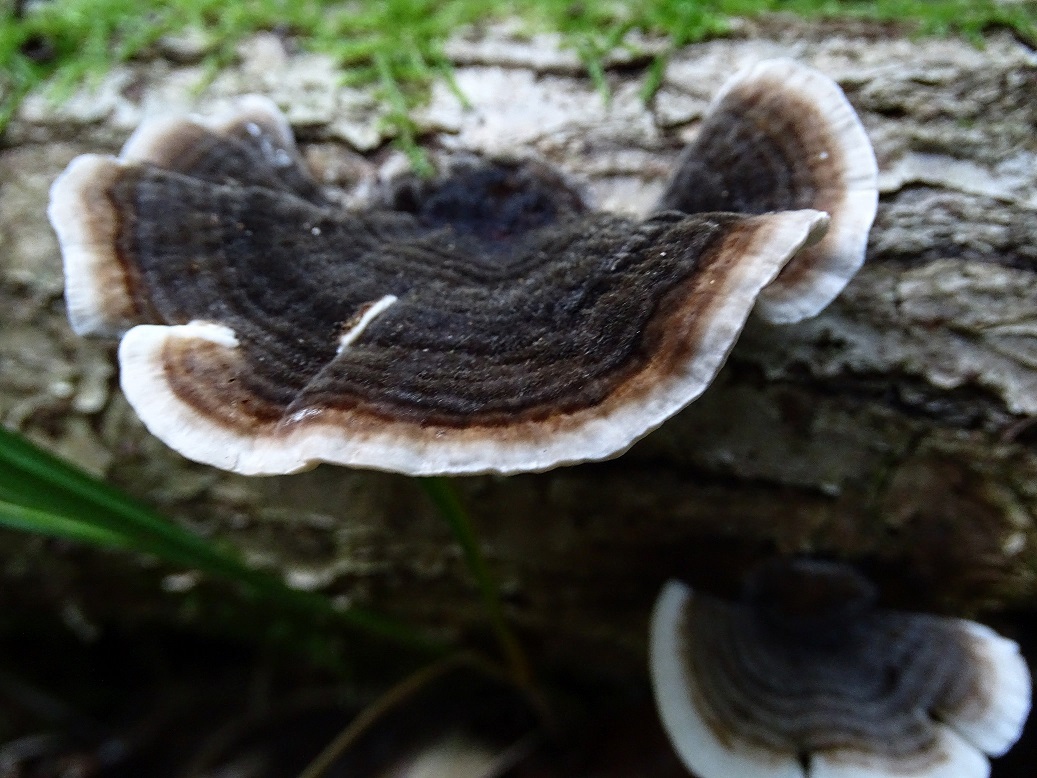 so dass ich doch ins Zweifeln gekommen war. gefunden auch noch am 06.09. im Bienwald, an Pinus. Die ersten beiden Fots von einem Stubben, die folgenden von einem daneben liegenden Stamm (also nicht ausgeschlossen, dass das was verschiedenes ist). Aber aufgrund der leuchtend weißen Poren habe ich z.B. Bjerkandera adusta ausgeschlossen, die den ersten Zweifel gebracht hatte. Da bleibt mir eigentlich nur noch Trametes versicolor.