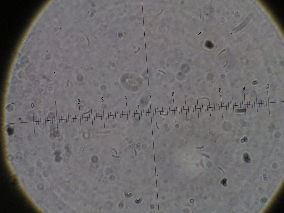 Hier zunächst die Art, die ich als Skeletocutis nivea (Kleinsporiger Knorpelporling) angesprochen habe; charakteristisch die winzigen Sporen (sorry .. meine ziemlich ersten Versuche mit dem Mikroskop!):