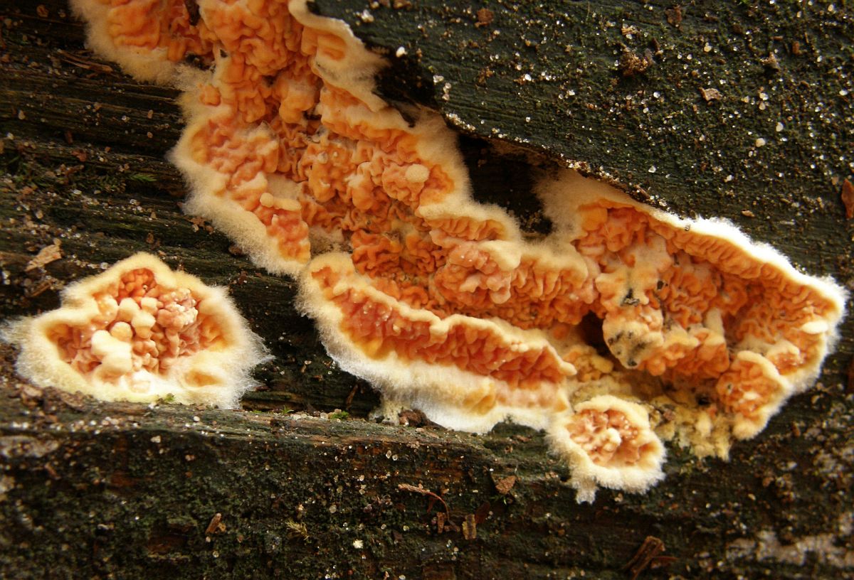Leucogyrophana mollusca (Orangene Fältlingshaut):
