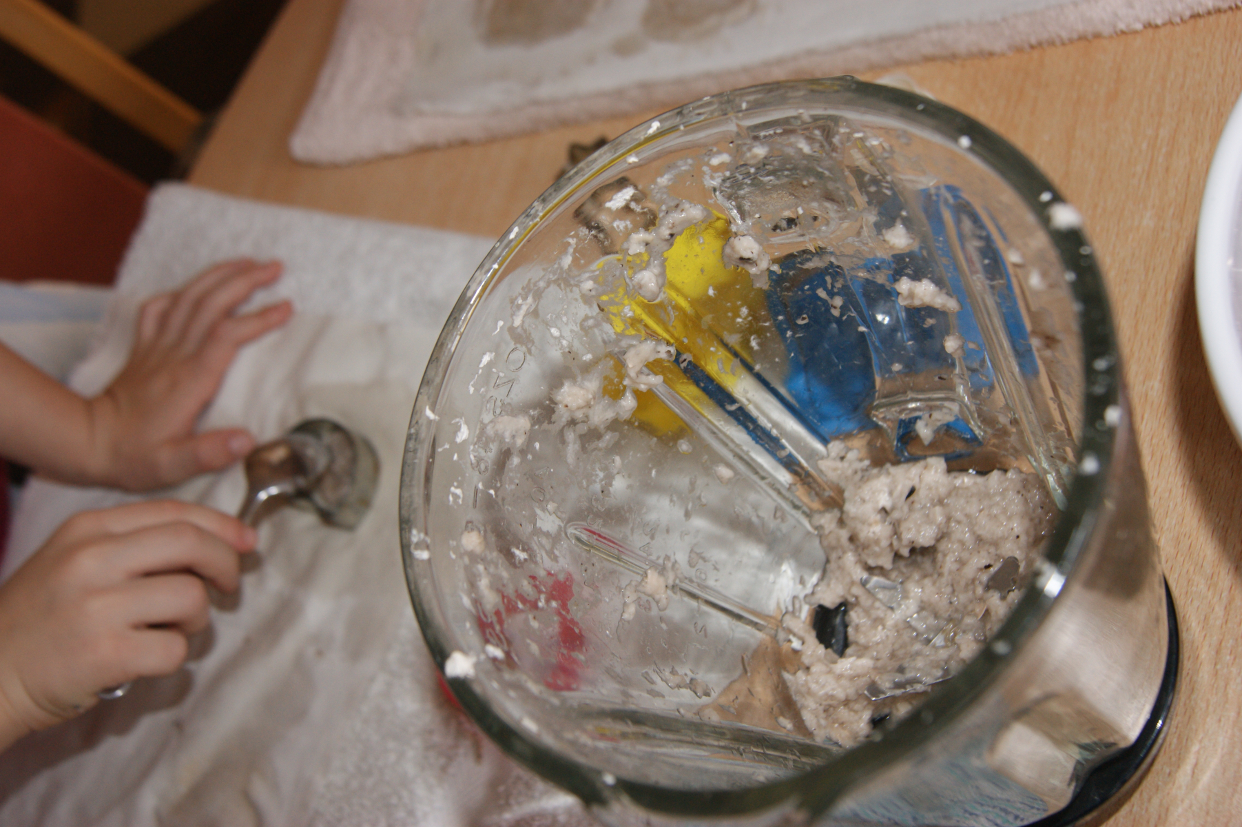 Kleingeschnippelte Birkenporlinge werden in Wasser püriert, ich verwende dazu einen Mixer. Bitte fragt Eure Eltern um Erlaubnis, ob ihr den aus Eurer Küche verwenden dürft, man muß den nämlich nachher ordentlich sauber machen.
