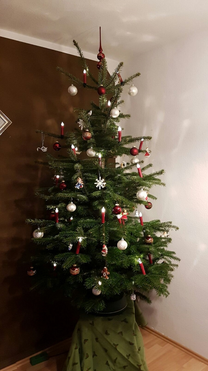 Bestimmungsmerkmale sind bunte Kugeln, allerlei Hängezeugs und ordentlich viele leuchtende Kerzen, so dass man ihn auch bei Dunkelheit erkennt!