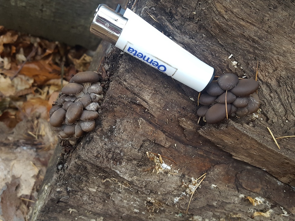 für Bestände von Sommeraustern / Lungenseitlingen und Winteraustern, gemeinsam am Substrat. Der Gelbstielige Muschelseitling scheint