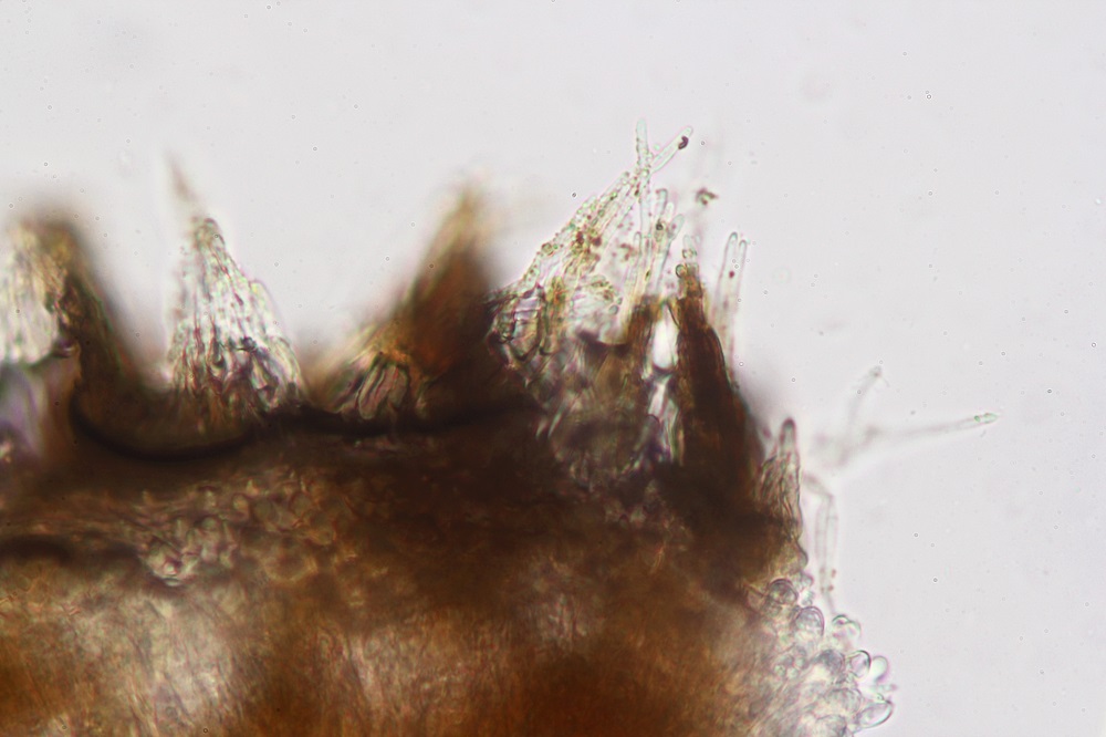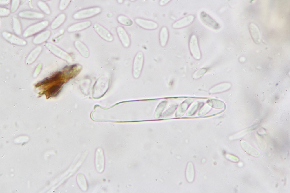 Die Art gehört zu denen, die einen Haken vortäuschen. Die Beule ist ein Basalauswuchs, der nicht mit der Basiszelle verbunden ist, deshalb "Haken-".Das war auch ein großes Problem mit den Haken. Bei 2 Asci fand ich vorgetäuschte Haken, aber da die Mehrheit der Asci keinen hatte bliebt das Haken- .