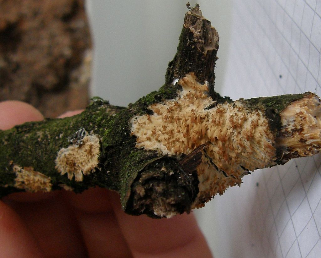 ich kann mit Bildern eines Fundes von 2011 aus Schweden von Hyphodontia quercina (Xylodon quercinus) an Zitterpappel dienen, den Frank für mich bestimmt hat.