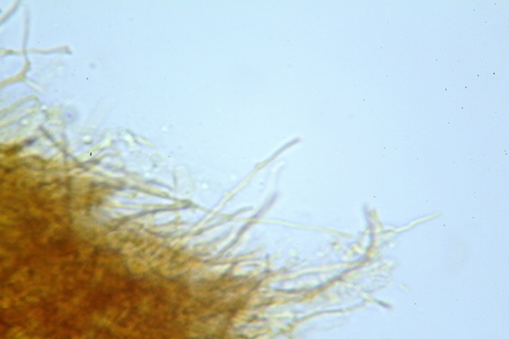 Übrigens, meine Pinzette habe ich in einer Apotheke gekauft, spitzer geht's nicht. Die Proben aus dem Hymenophor dienten in erster Linie dem Sporen/-Basidien/-Zystiden-Finden, die Hyphen hatte ich nicht im Visier.