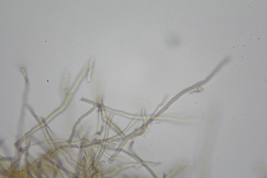 Skeletthyphen hast du, zB auf Bild 8 (mit den Dendrohyphidien) die langen, dickwandigen Hyphen. Auch auf dem letzten Bild (13) sieht das eher aus wie Skeletthyphen (die auch mal etwas verzweigt sein dürfen, vor allem im Kontext). Bindehyphen sind meist noch stärker verzweigt oder sogar verästelt. Und dabei auch idR. recht kurz.